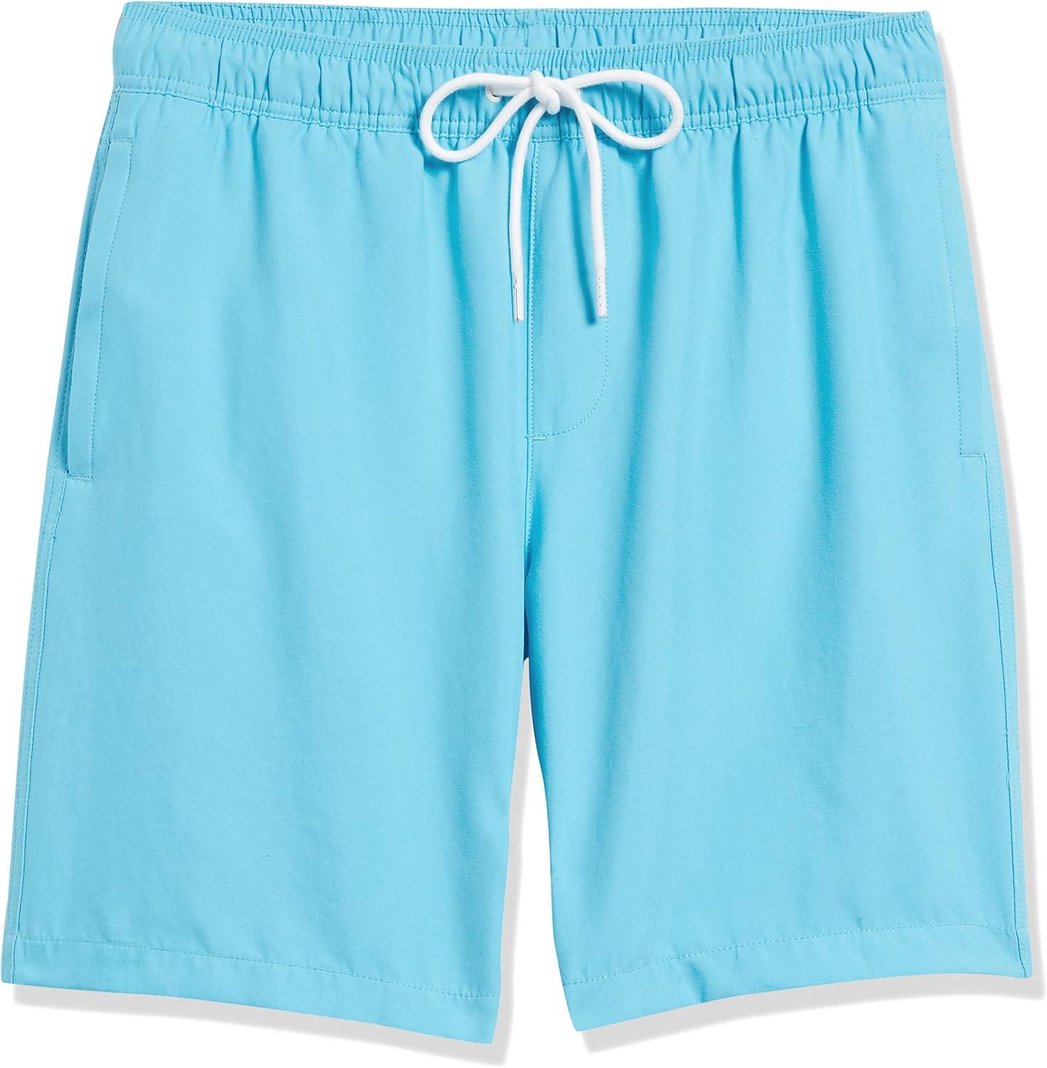 Amazon Essentials Men’s 9″ Swim Trunks with Mesh Lining, Pockets, Drawstring Closure(Aqua Blue)