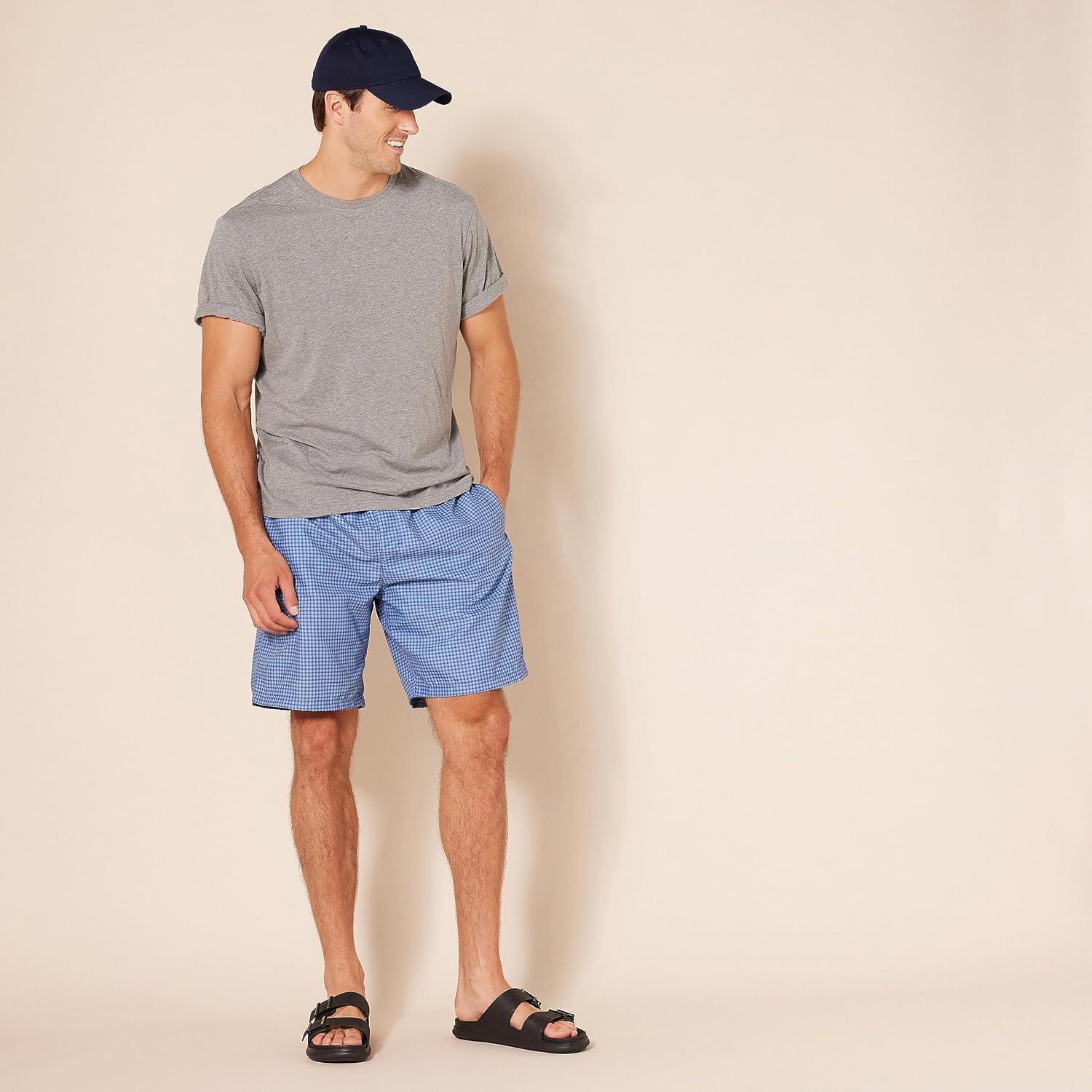 Amazon Essentials Men's 9" Swim Trunks with Mesh Lining, Pockets, Drawstring Closure(Blue Geometric Print)