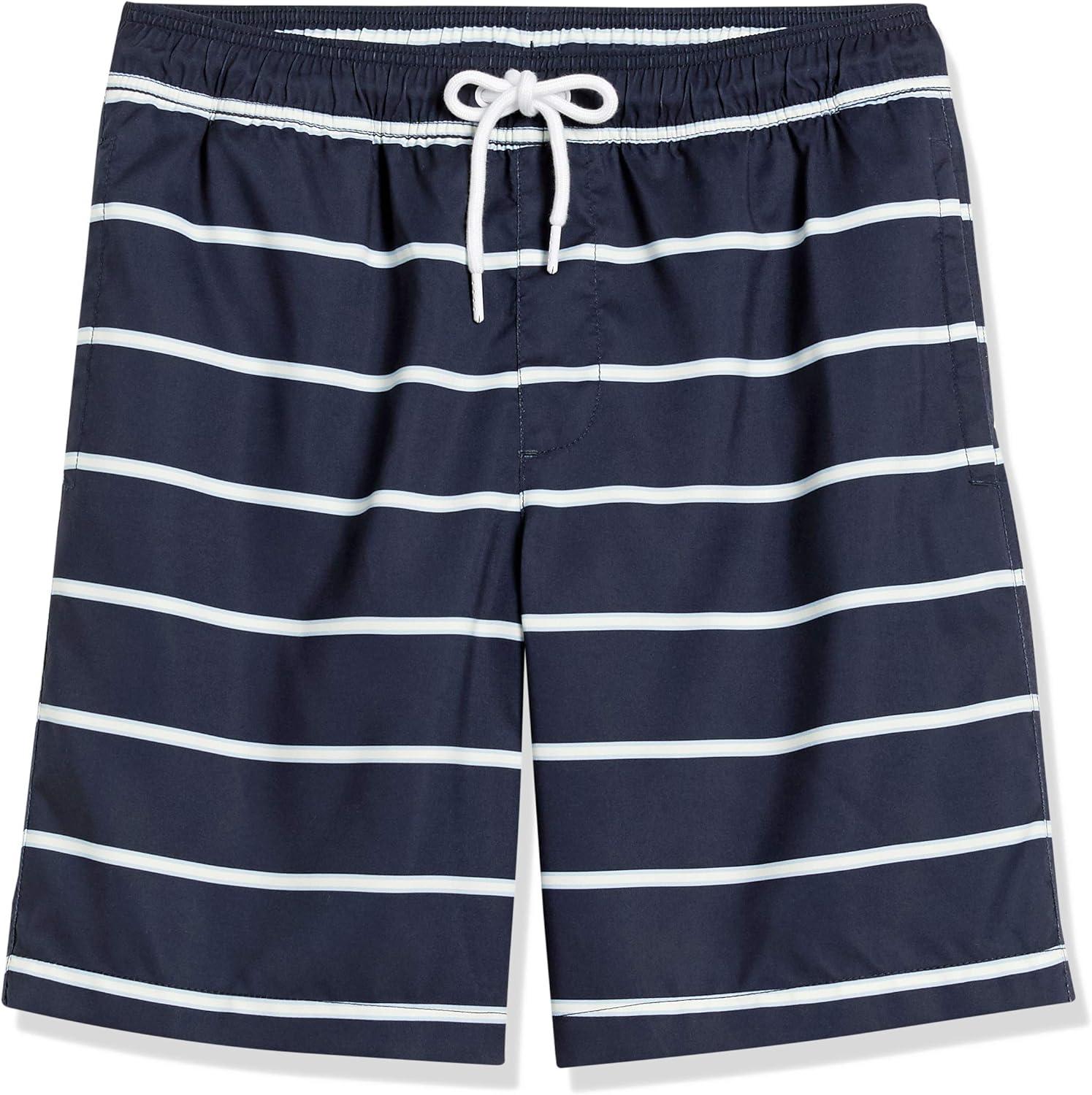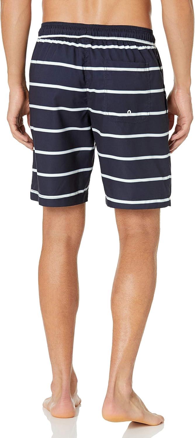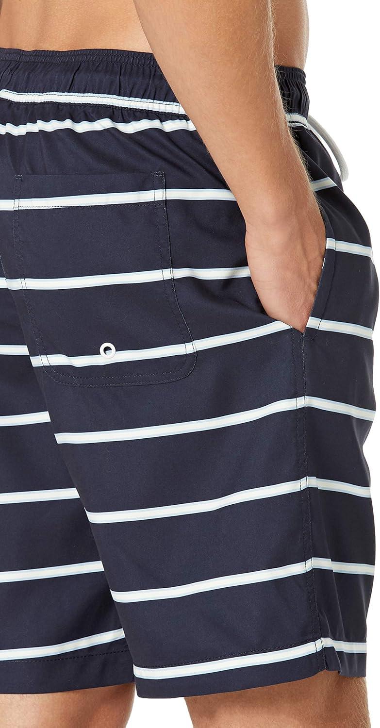 Amazon Essentials Men's 9" Swim Trunks with Mesh Lining, Pockets, Drawstring Closure(Navy Stripe)