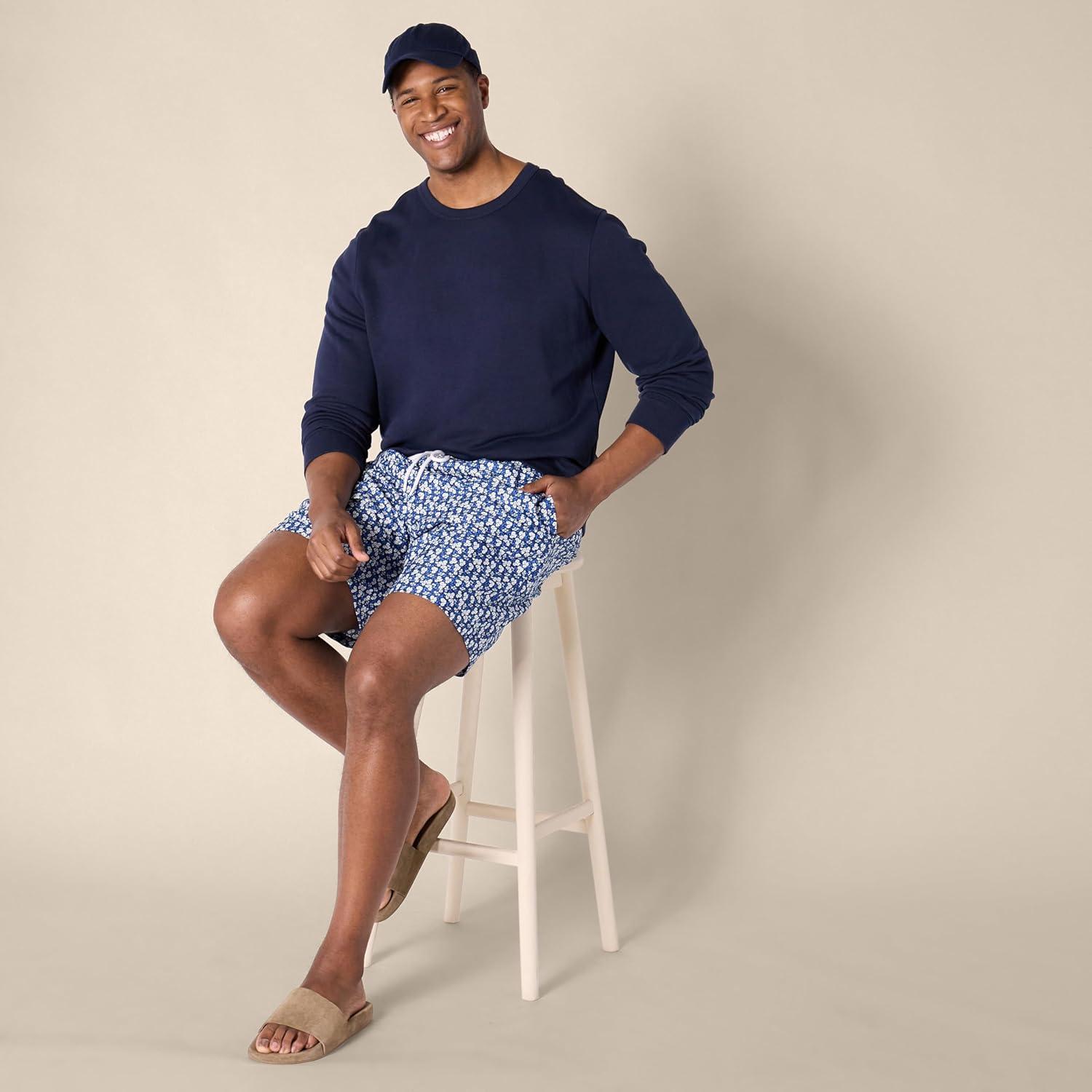 Amazon Essentials Men’s 9″ Swim Trunks with Mesh Lining, Pockets, Drawstring Closure(Navy White Posey Floral)