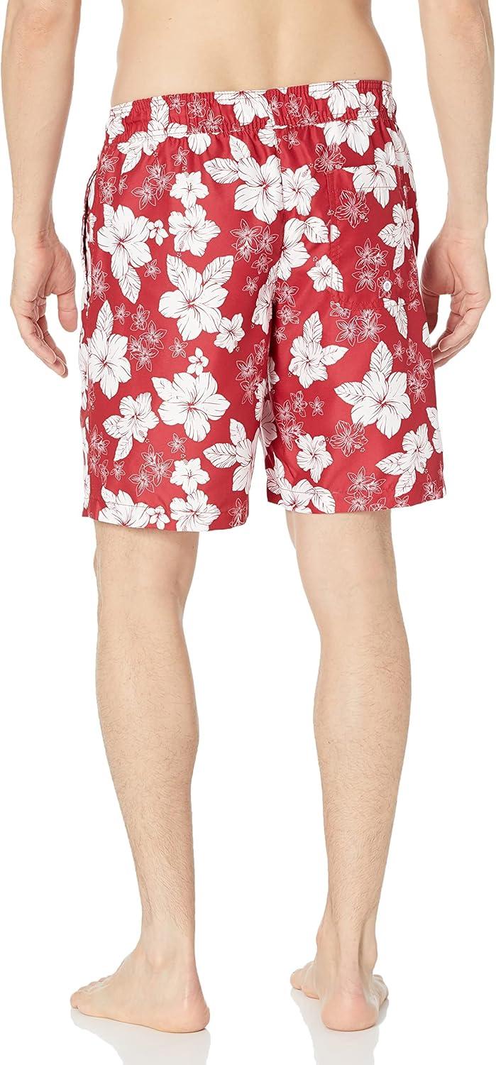 Amazon Essentials Men's 9" Swim Trunks with Mesh Lining, Pockets, Drawstring Closure(Red Hibiscus Flower)