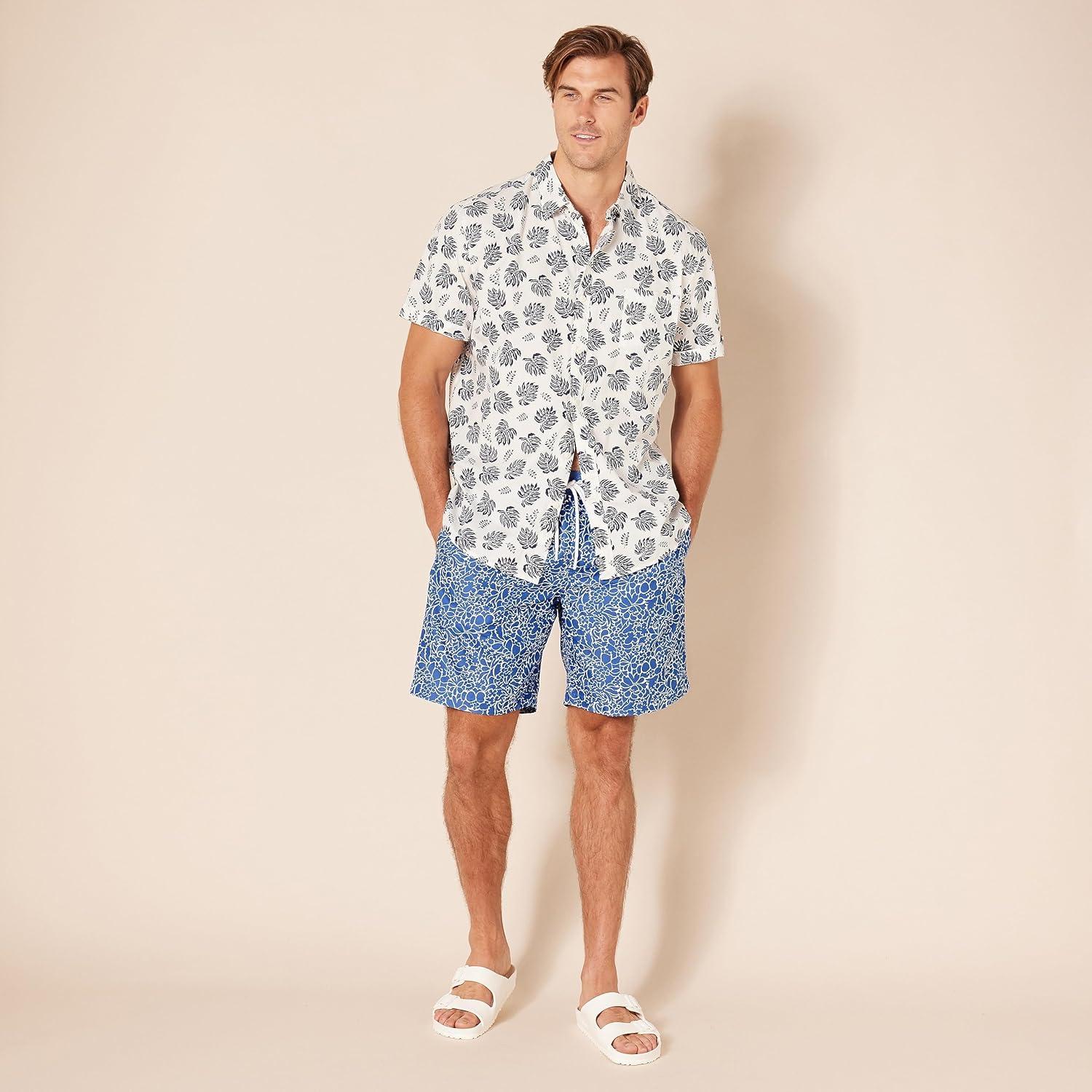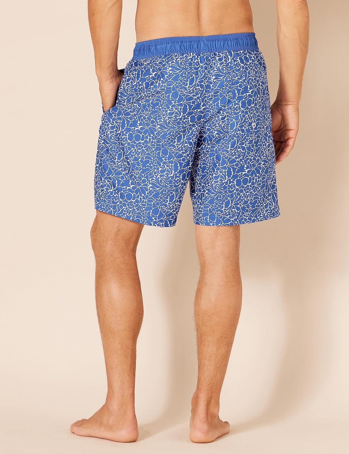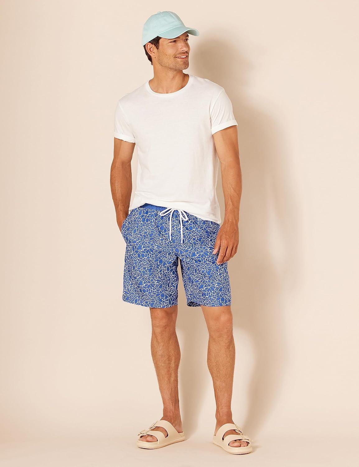 Amazon Essentials Men’s 9″ Swim Trunks with Mesh Lining, Pockets, Drawstring Closure(Silhouette Floral)