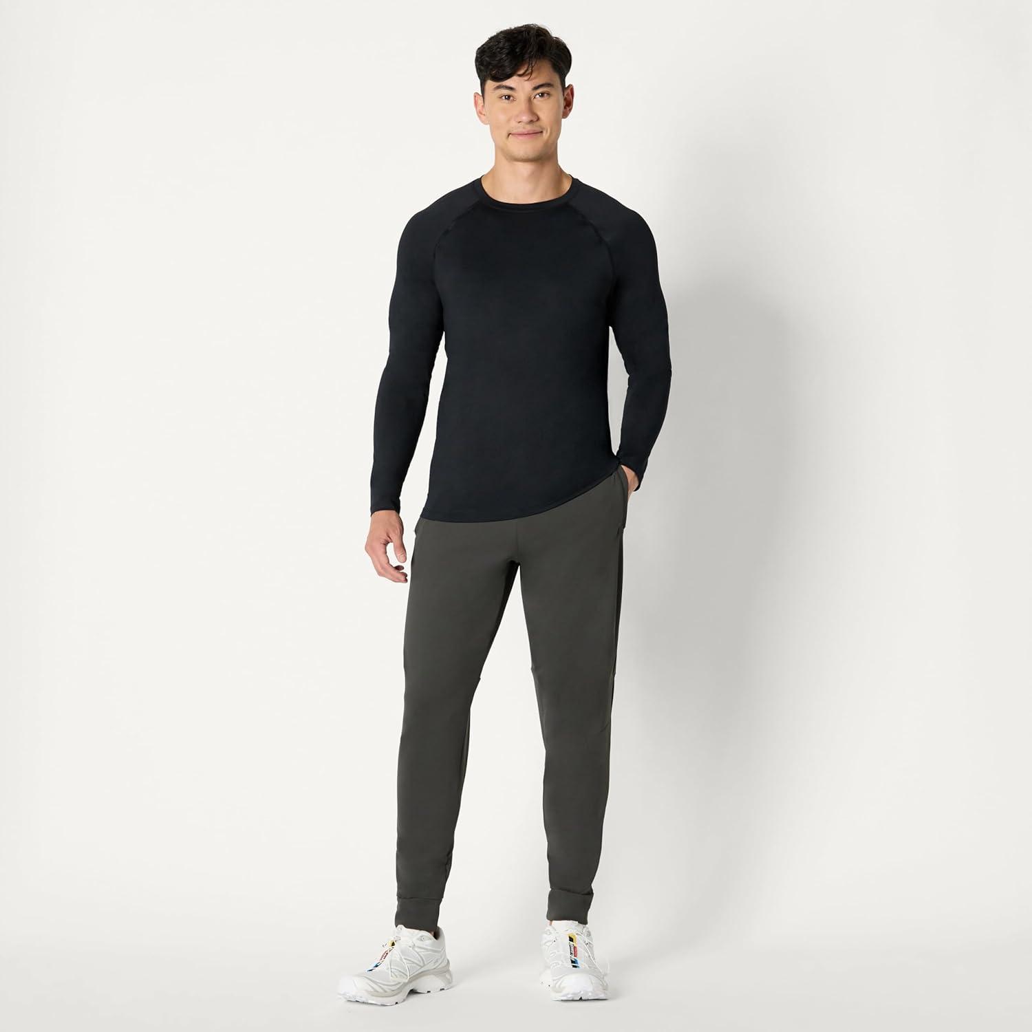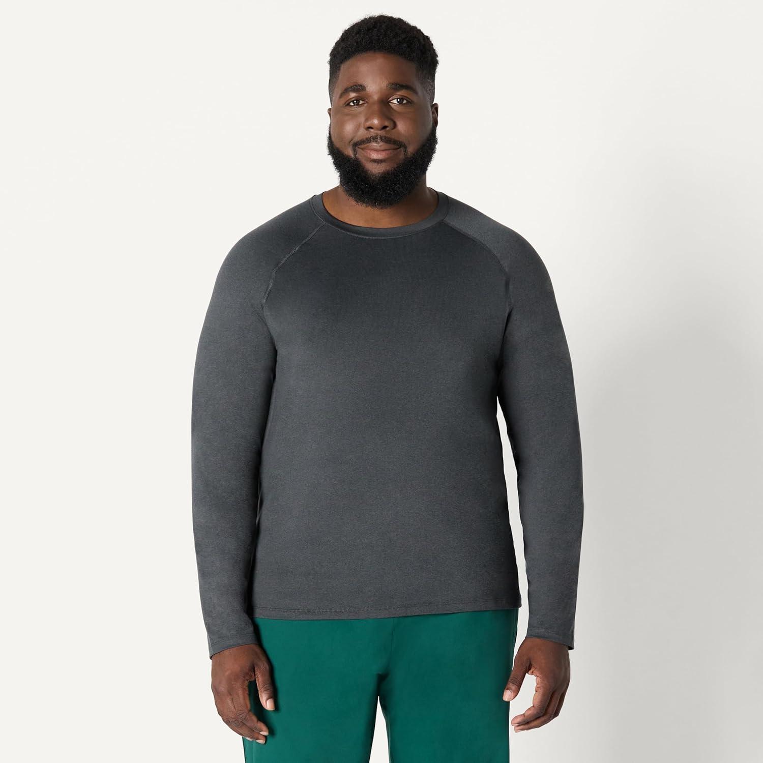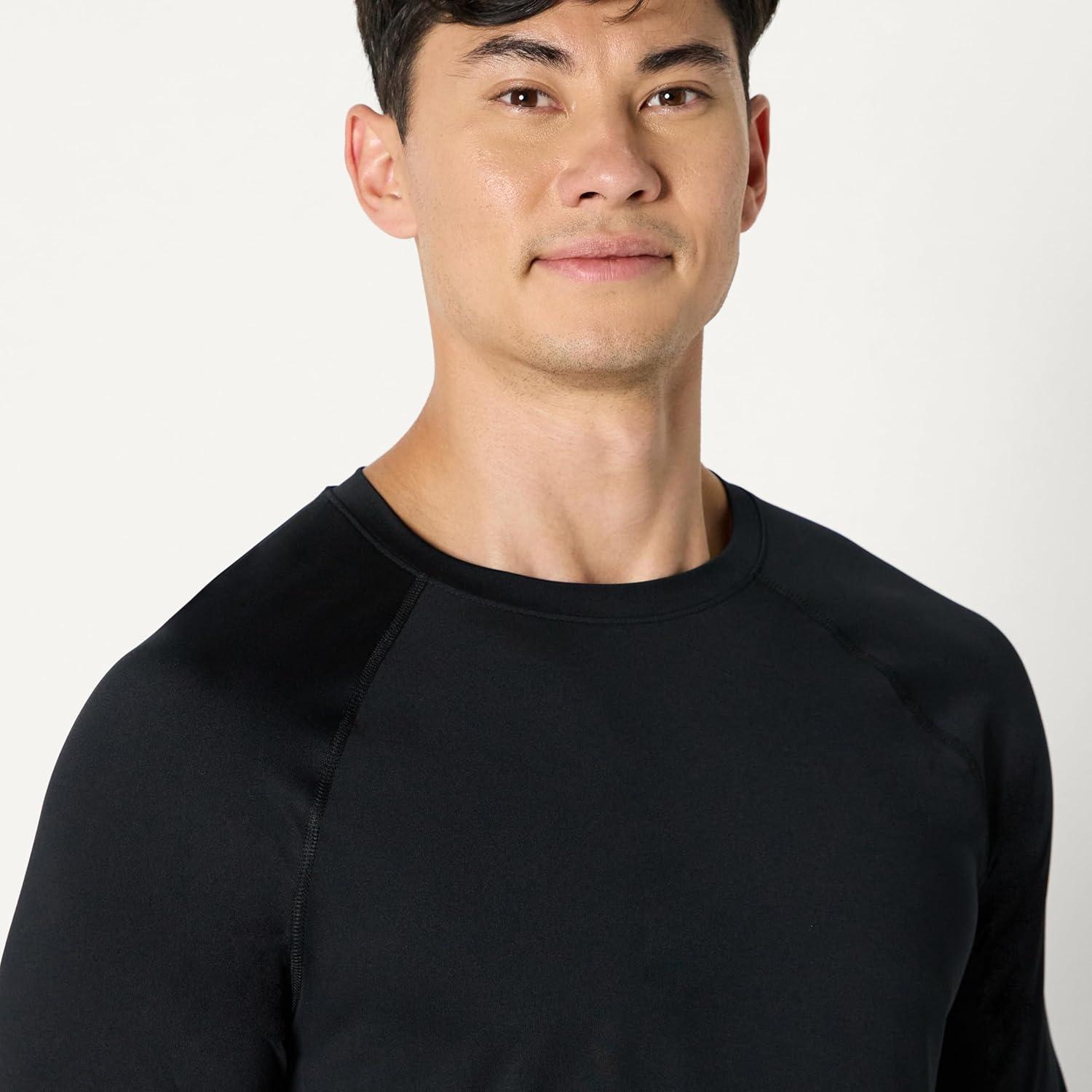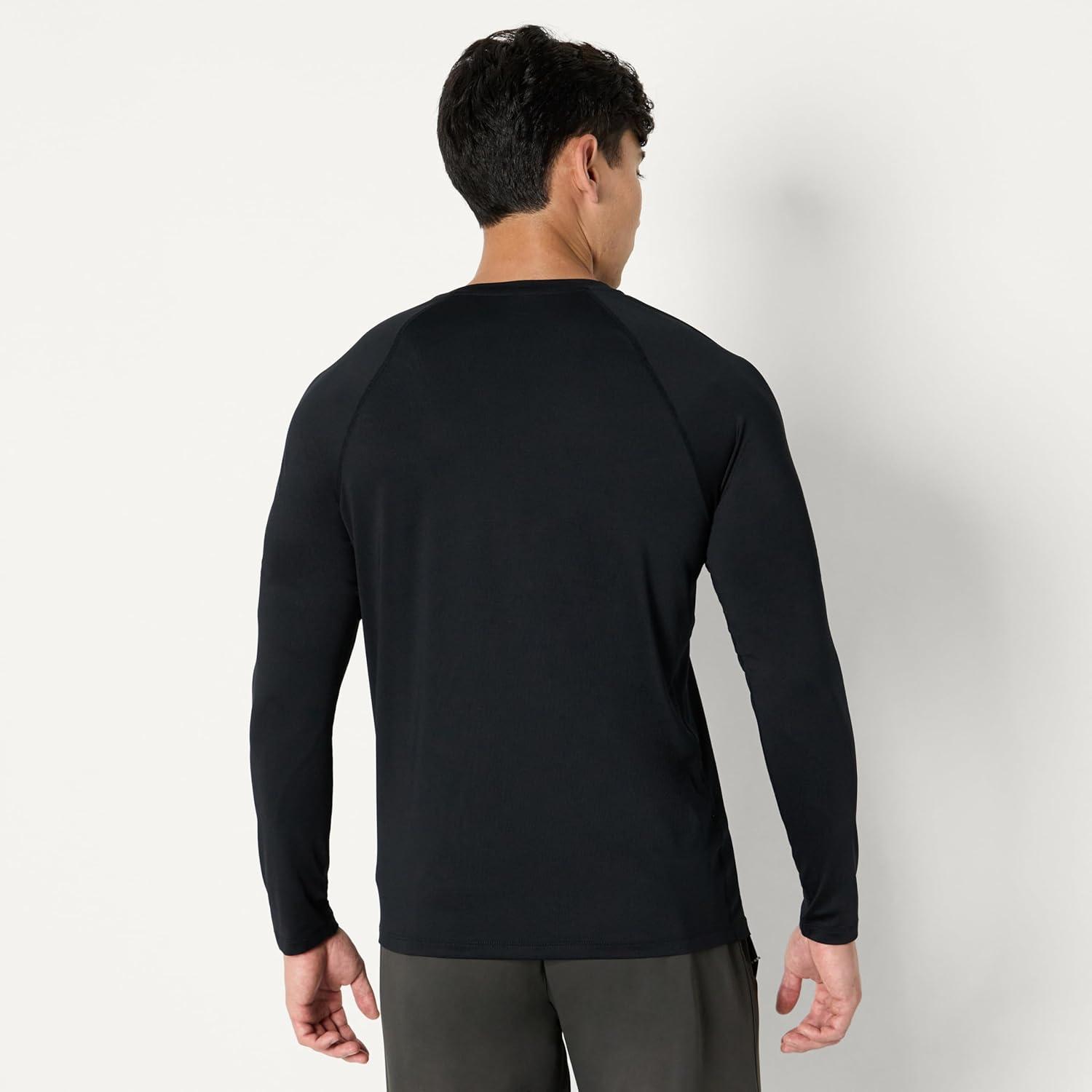 Amazon Essentials Mens Active Quick Dry Tech Stretch Lightweight Long-Sleeve T-Shirt (Available in Big&Tall)(Black/Heather Graphite)