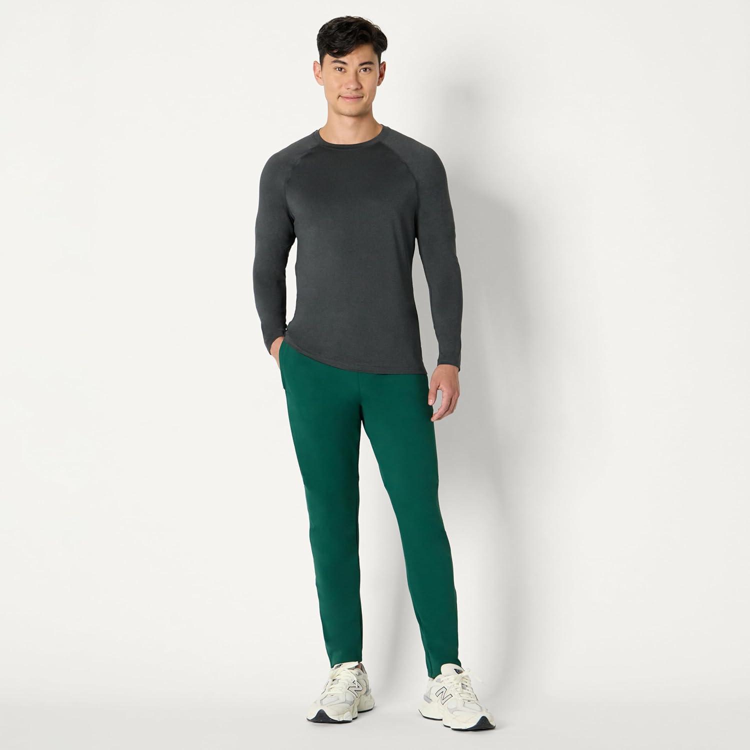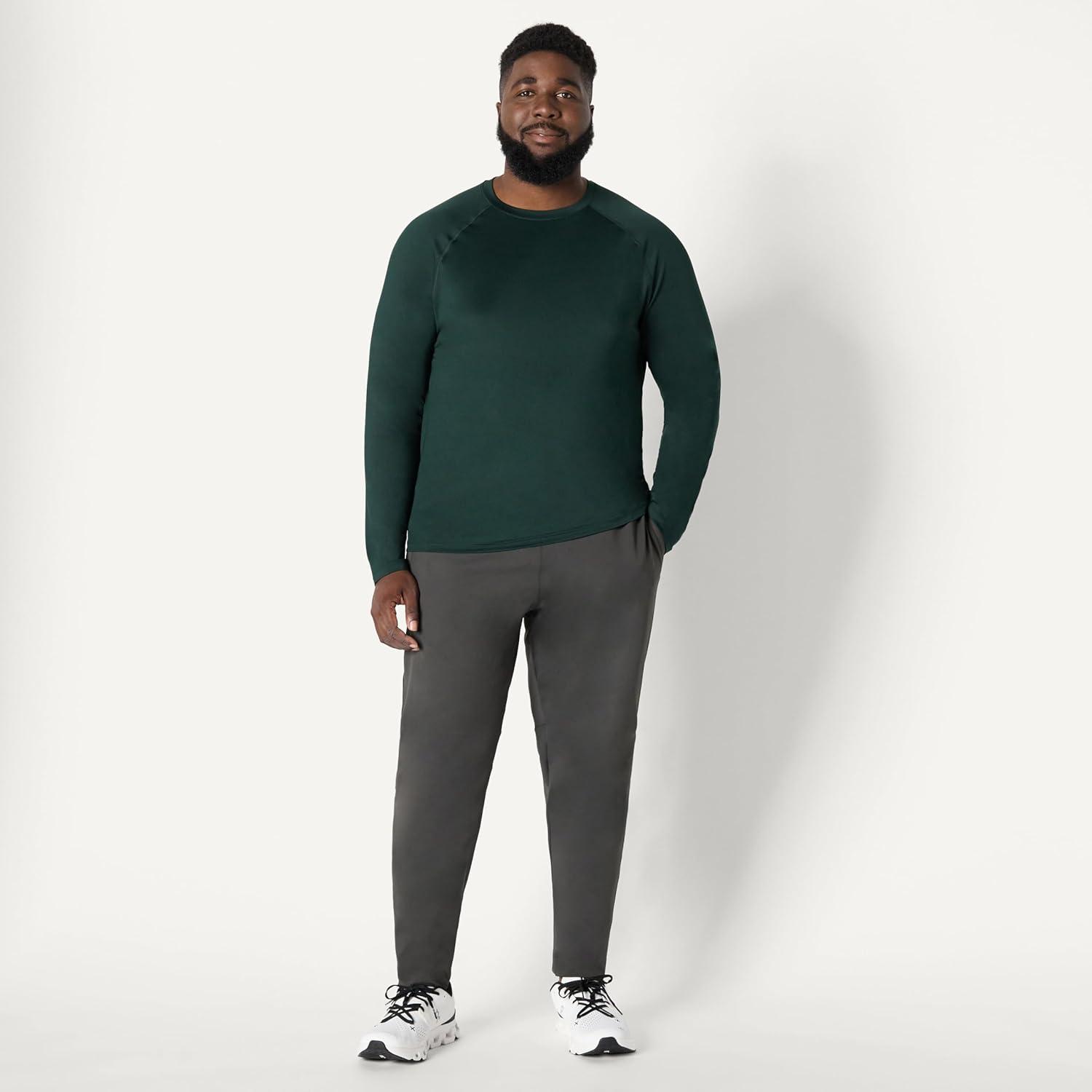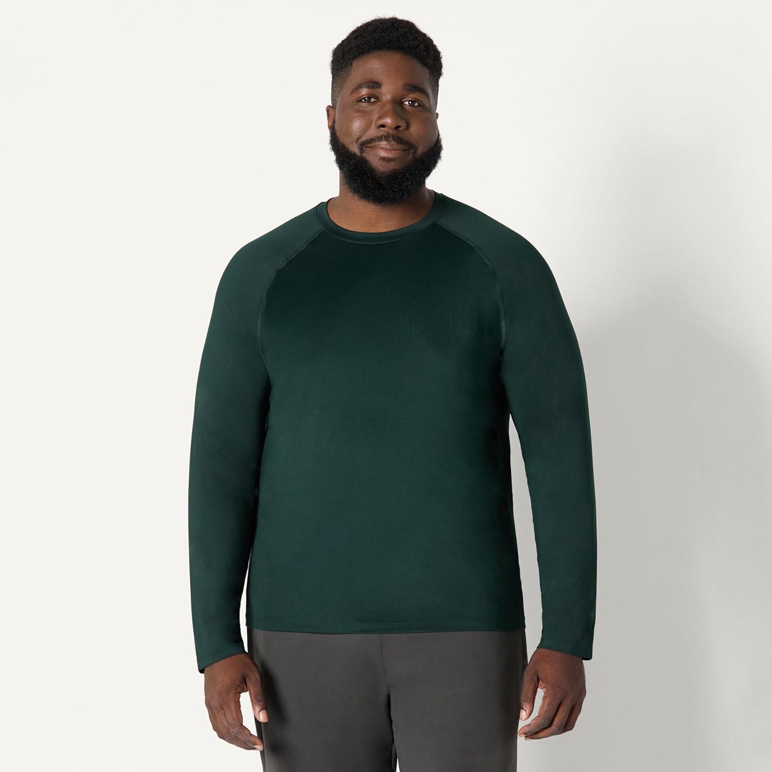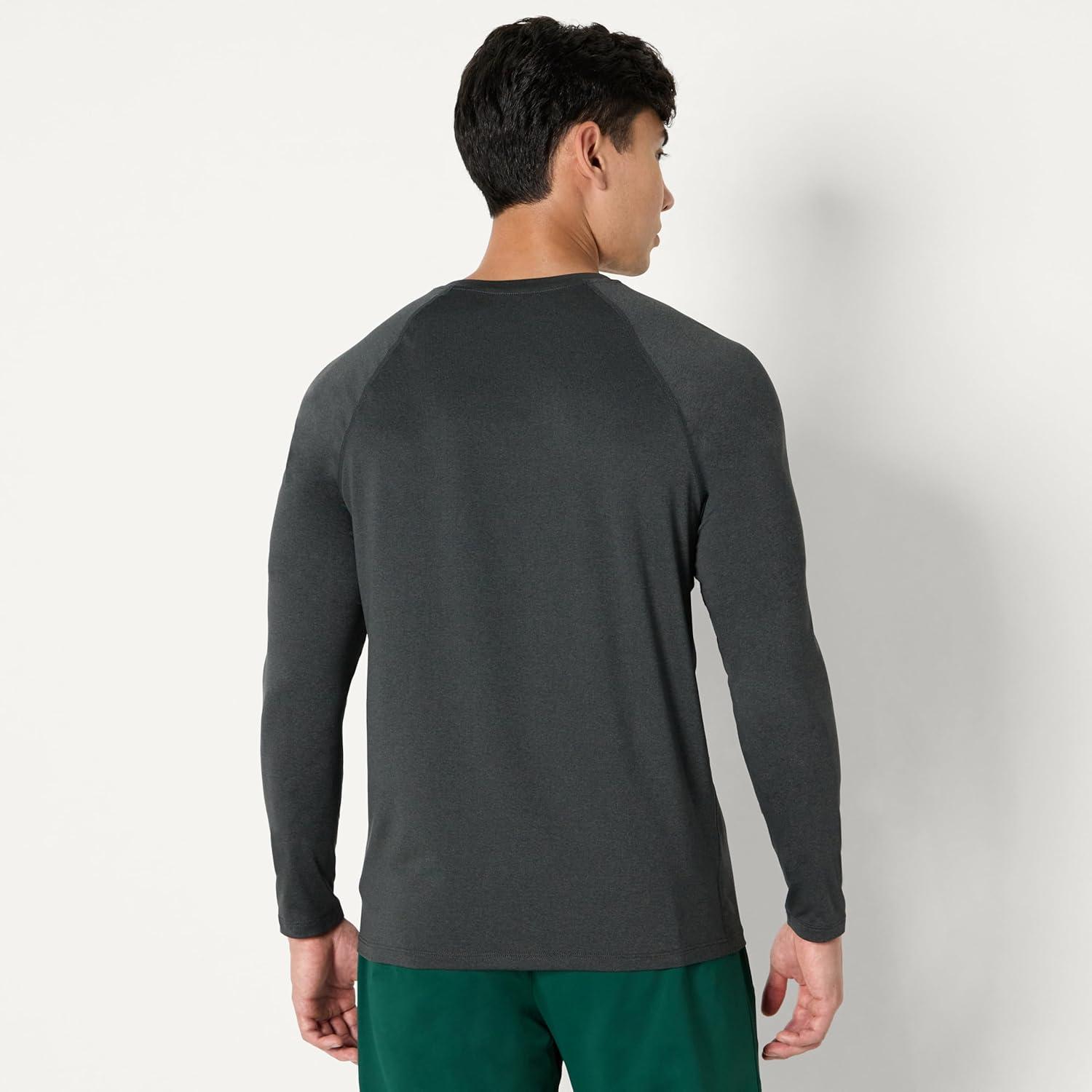Amazon Essentials Mens Active Quick Dry Tech Stretch Lightweight Long-Sleeve T-Shirt (Available in Big&Tall)(Dark Green/Heather Graphite)
