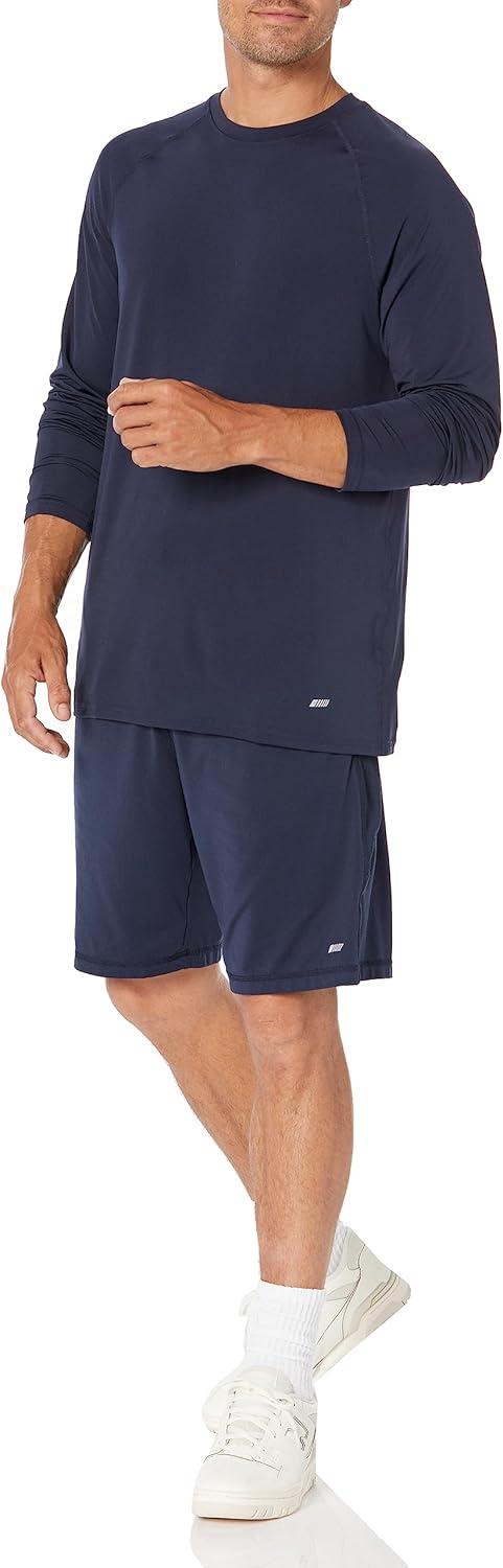 Amazon Essentials Mens Active Quick Dry Tech Stretch Lightweight Long-Sleeve T-Shirt (Available in Big&Tall)(Navy)