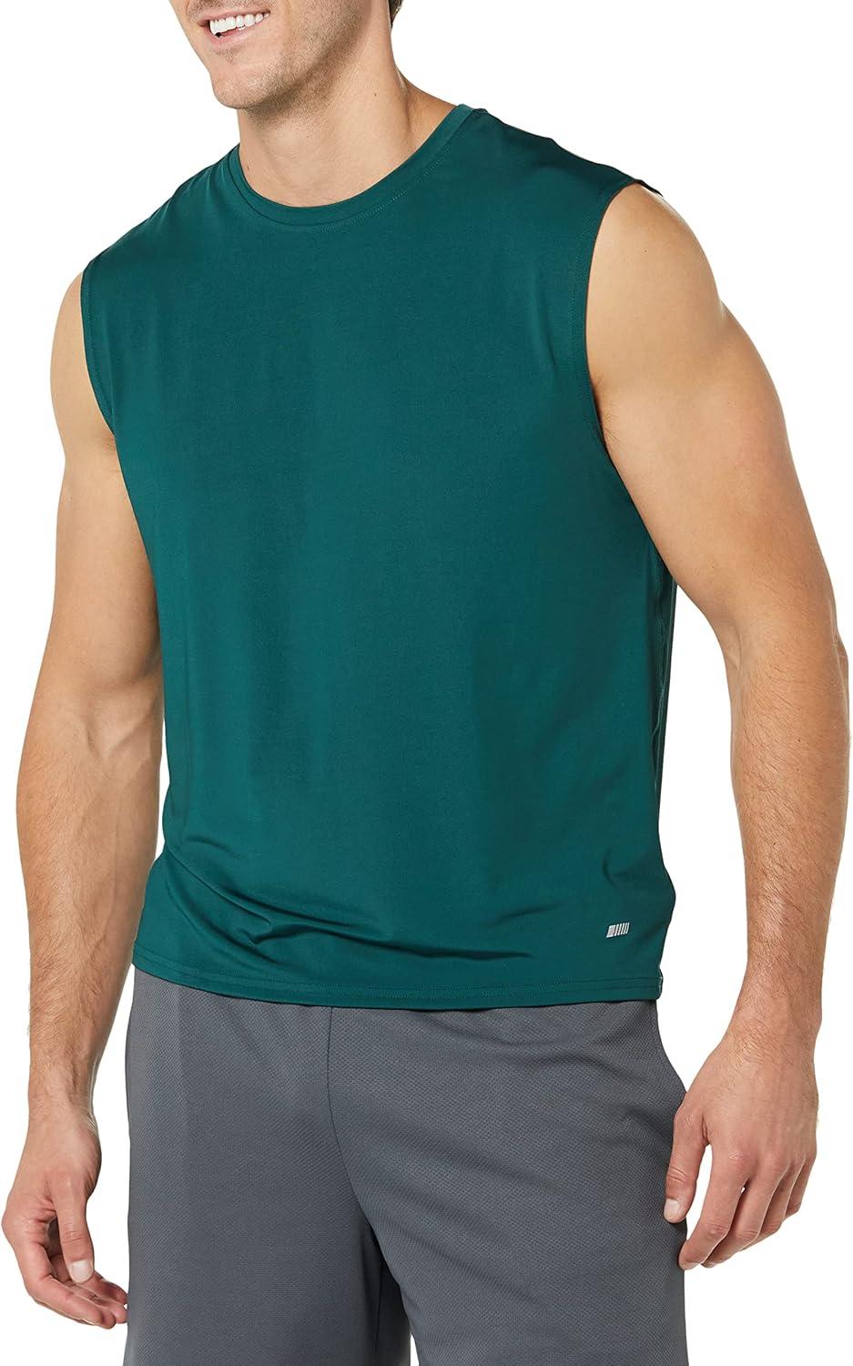 Amazon Essentials Men’s Active Tech Stretch Workout Tank Baselayer(Dark Green)