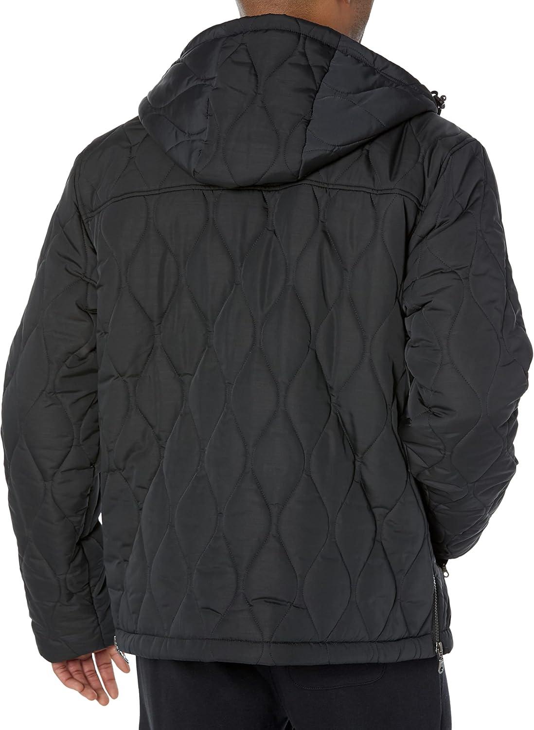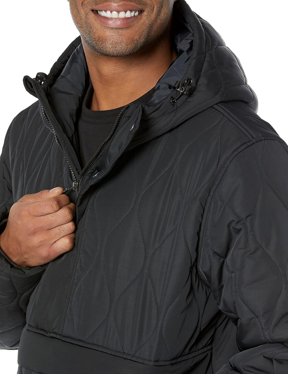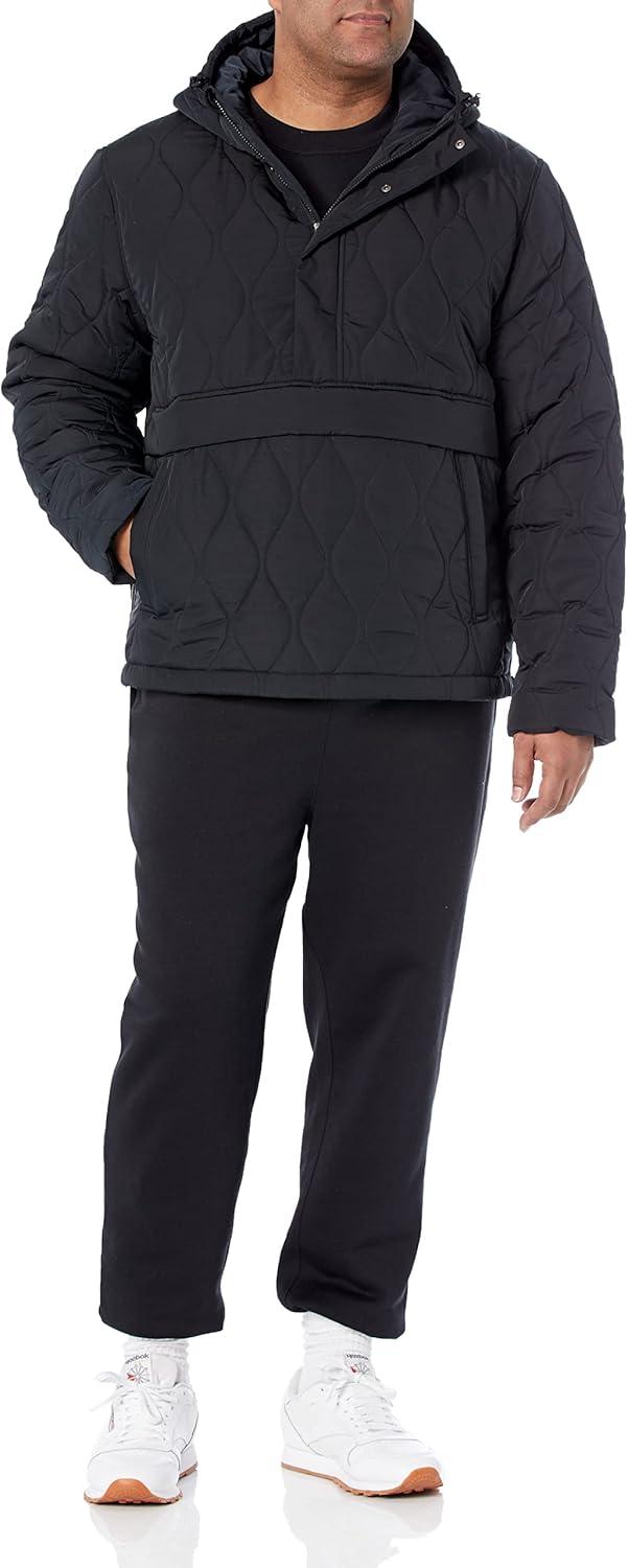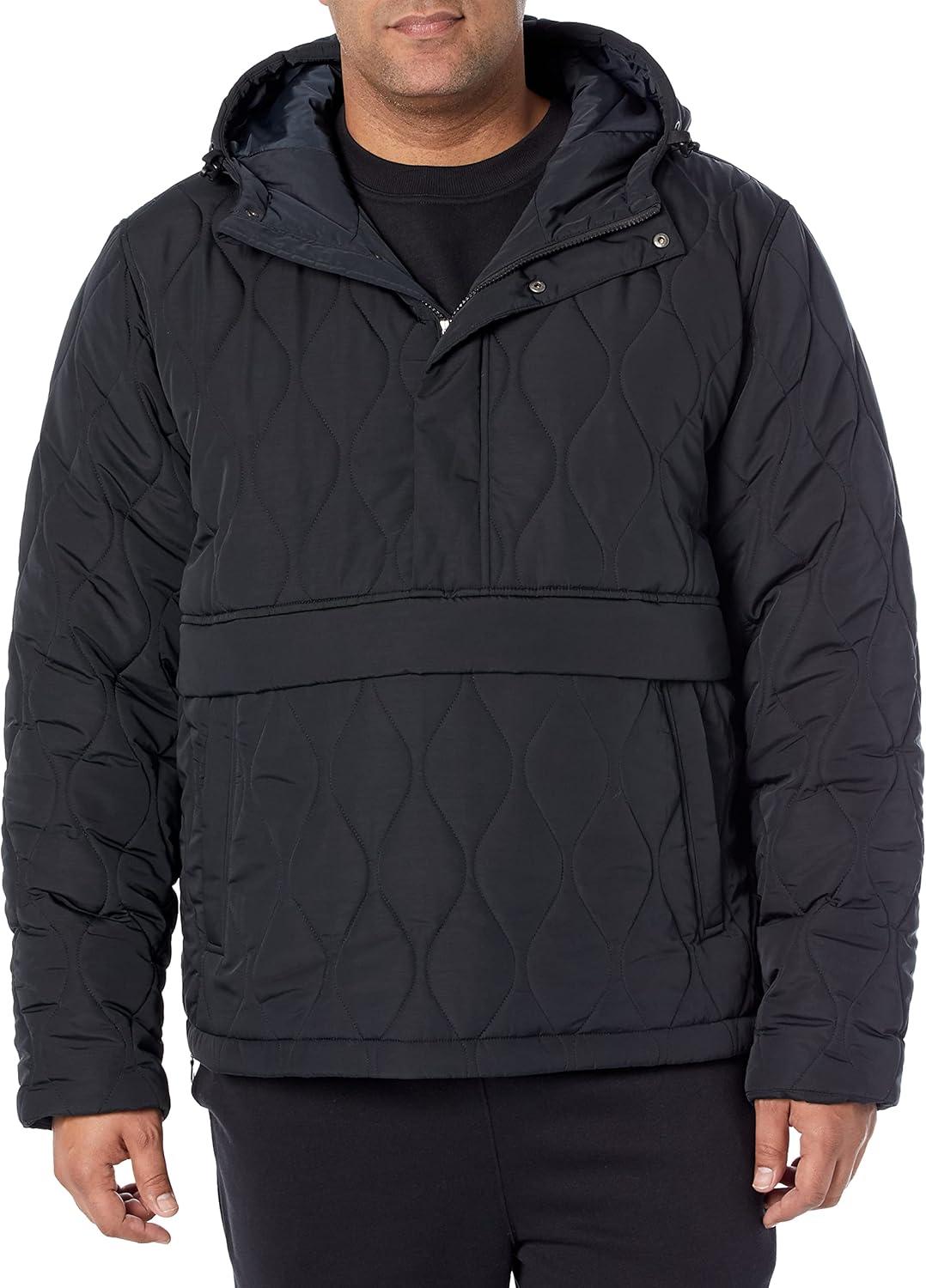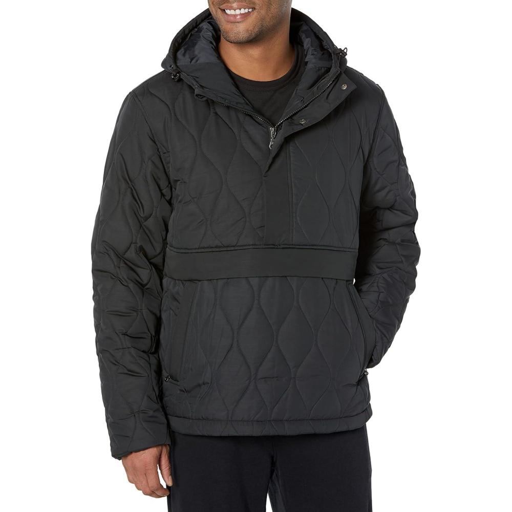 Amazon Essentials Men’s Anorak Hooded Quarter-Zip Puffer Coat(Black)