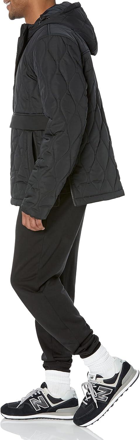 Amazon Essentials Men's Anorak Hooded Quarter-Zip Puffer Coat(Black)