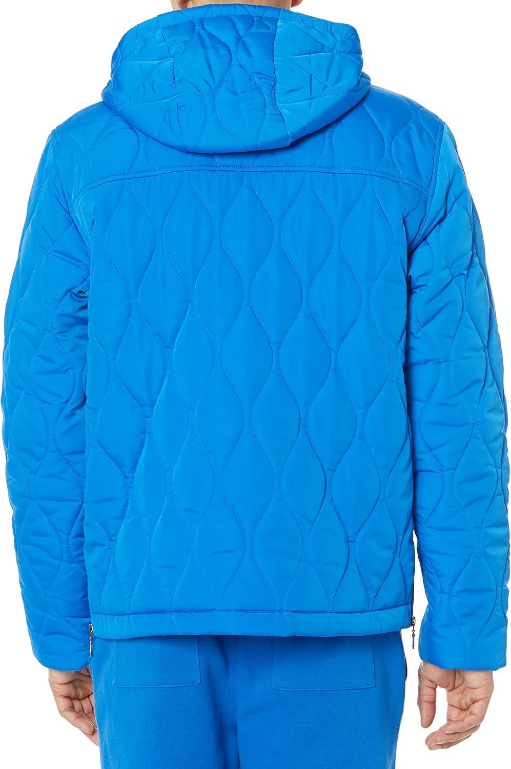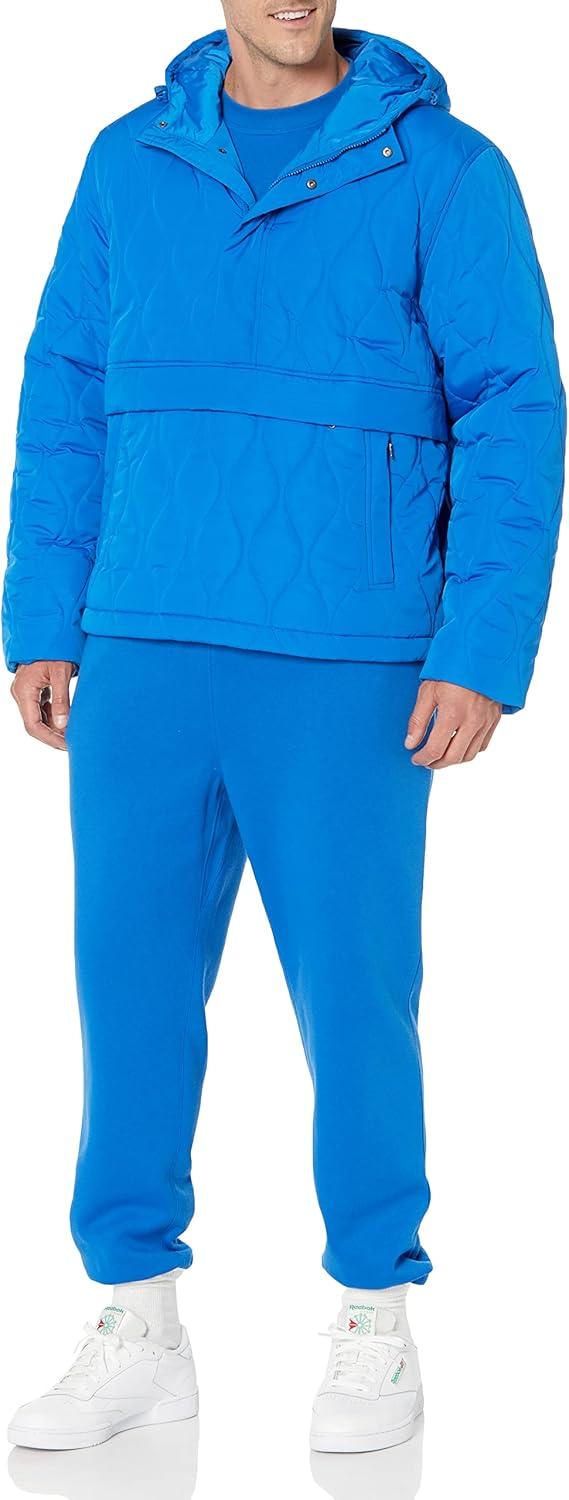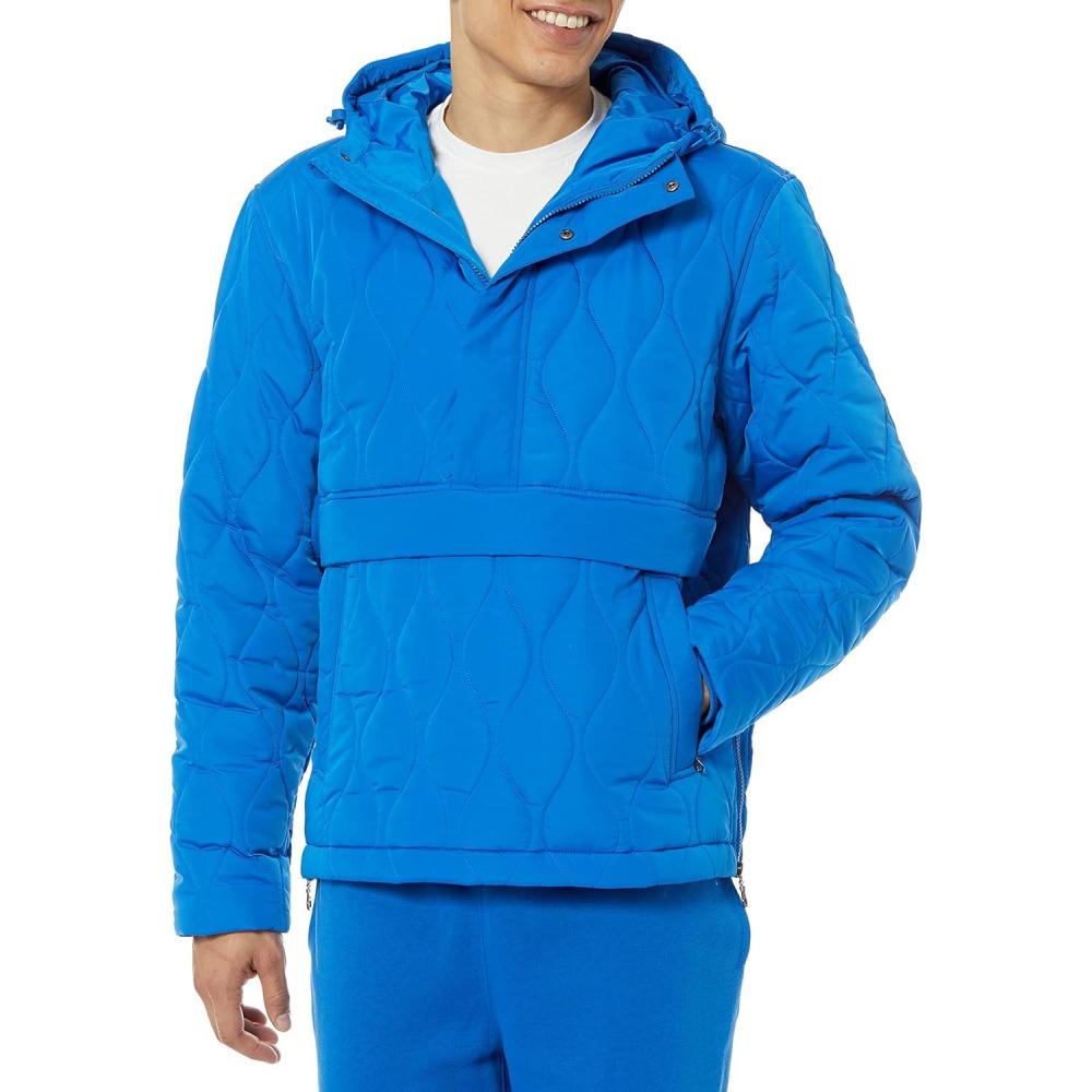 Amazon Essentials Men’s Anorak Hooded Quarter-Zip Puffer Coat(Bright Blue)