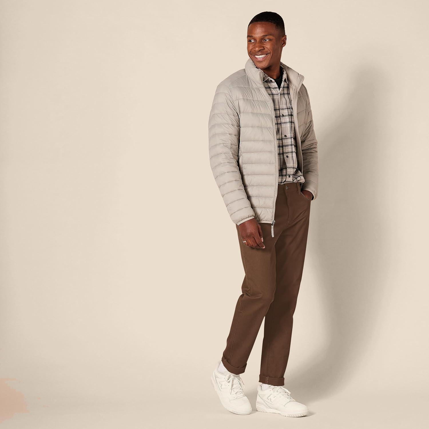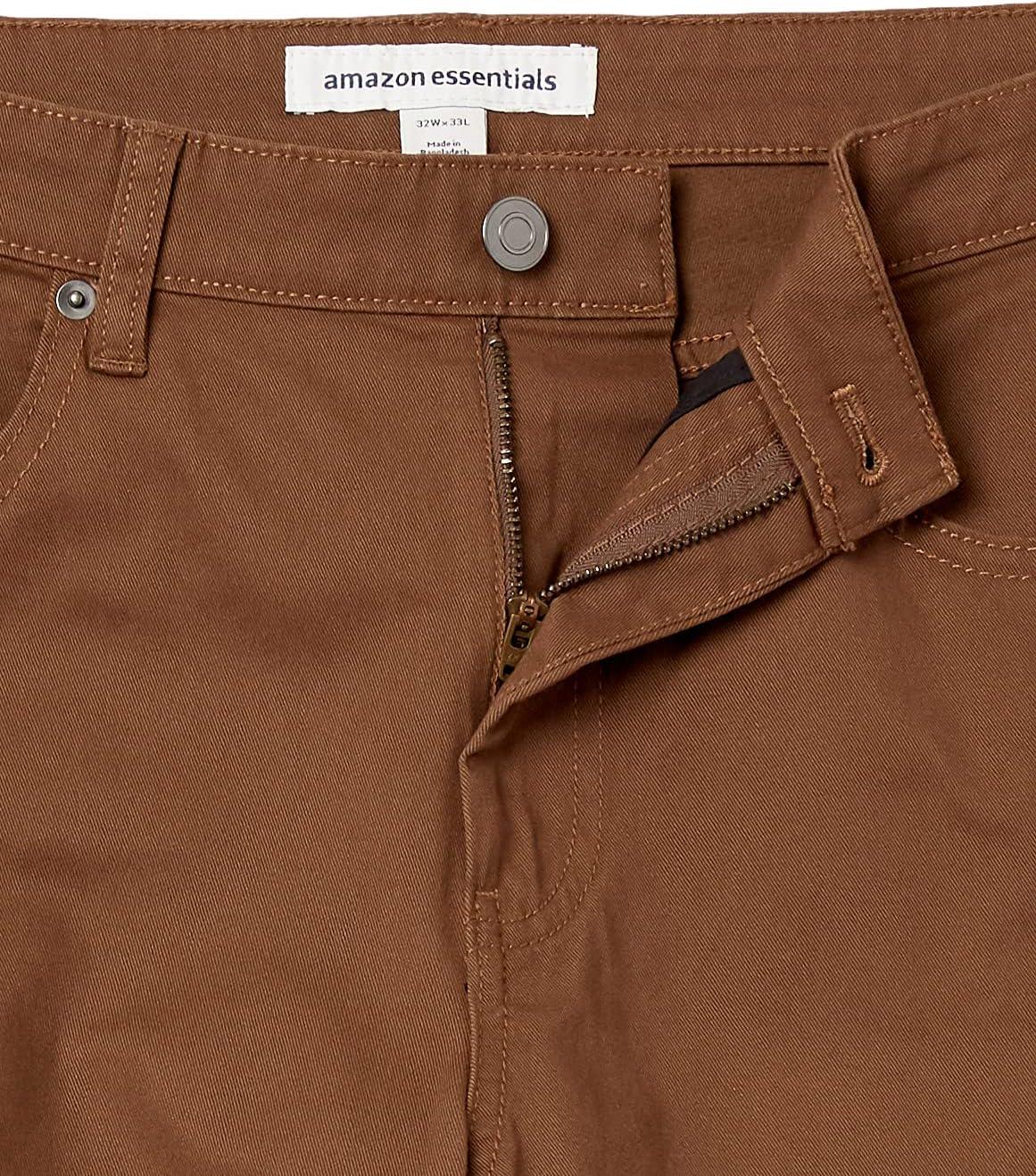 With an athletic fit, these men's casual pants are crafted to offer extra room in the hip and thigh, sitting comfortably at the waist for a flattering silhouette. The stretch pants for men are made from high-quality stretch cotton twill, providing ease of movement and a fit that adapts to your daily activities. These men work pants come in a classic, jeans-inspired 5-pocket style, making them great for both casual outings and more formal occasions. Whether you're heading to the office or enjoying a leisurely day, these casual pants for men offer the versatility you need. Details such as a shank button closure, rivets, and a zipper fly provide durability and a polished look. At Amazon Essentials, we pride ourselves on delivering reliable, high-quality, and affordable apparel that fits seamlessly into your lifestyle. Our consistent sizing and attention to detail mean you can shop with confidence, knowing that every piece is designed to meet the highest standards of comfort and fashion. Our essential pants for men will elevate your daily wardrobe effortlessly.