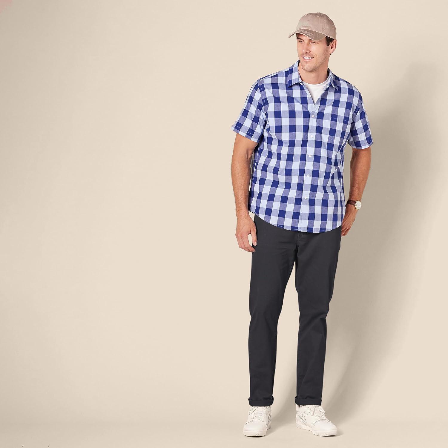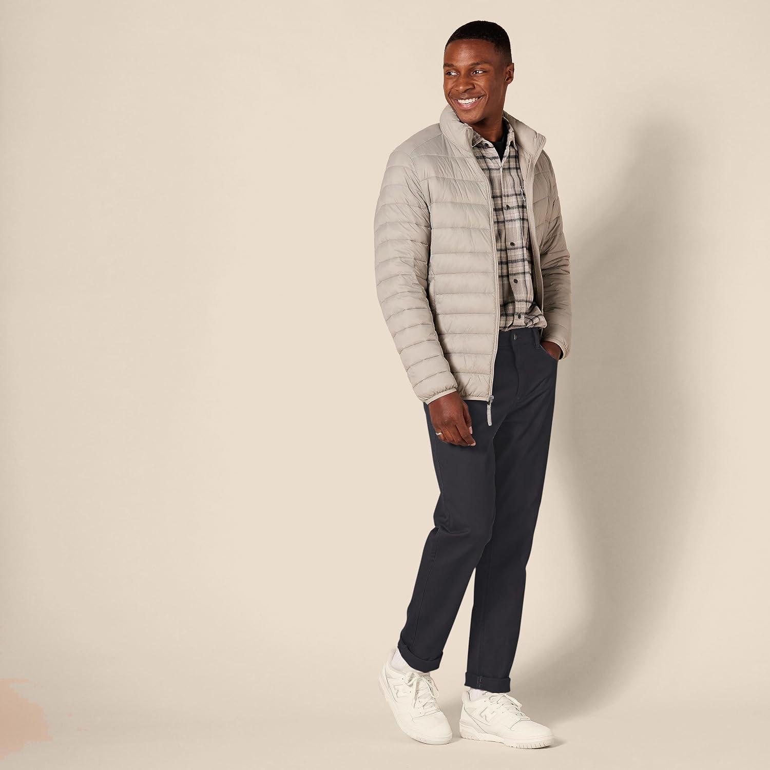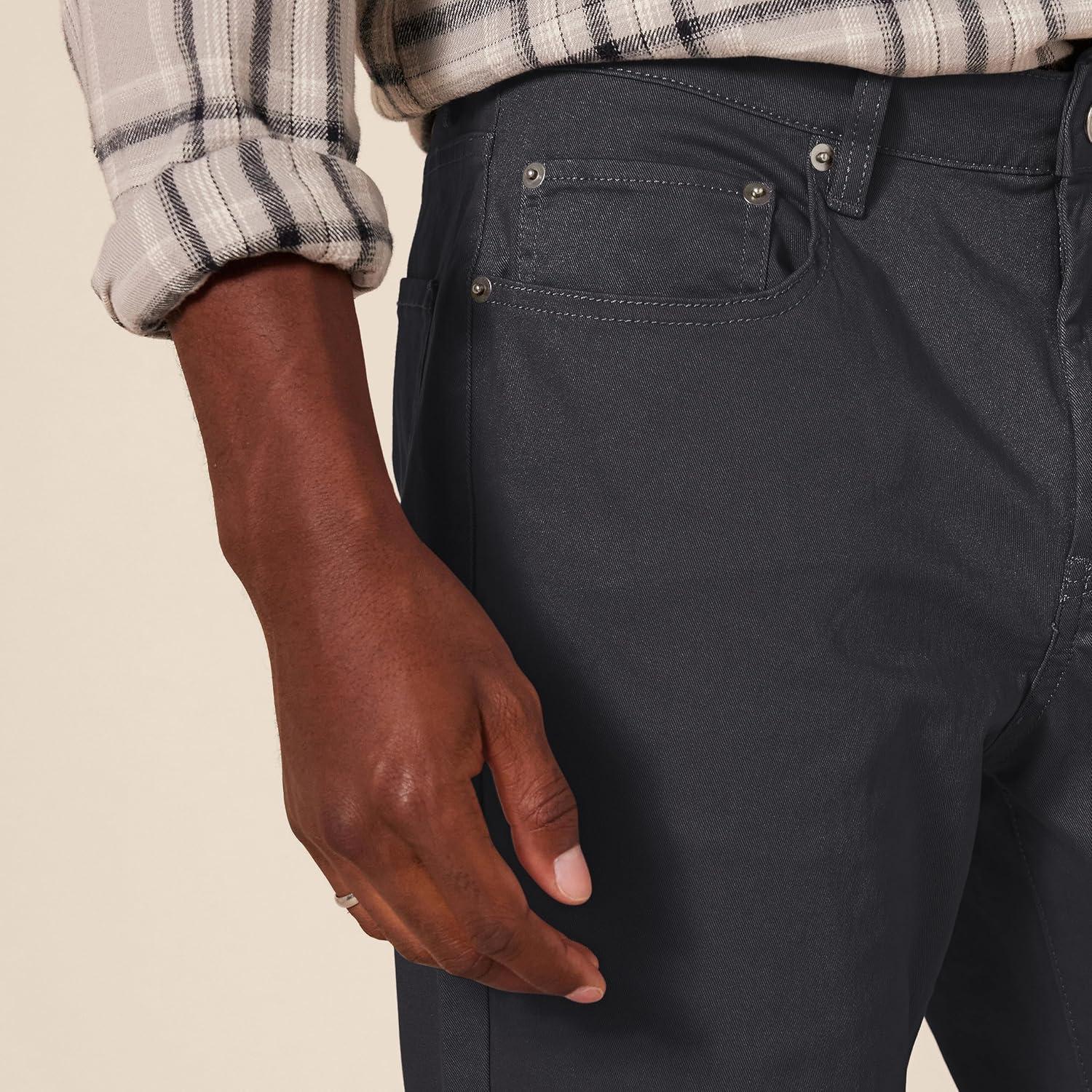 With an athletic fit, these men's casual pants are crafted to offer extra room in the hip and thigh, sitting comfortably at the waist for a flattering silhouette. The stretch pants for men are made from high-quality stretch cotton twill, providing ease of movement and a fit that adapts to your daily activities. These men work pants come in a classic, jeans-inspired 5-pocket style, making them great for both casual outings and more formal occasions. Whether you're heading to the office or enjoying a leisurely day, these casual pants for men offer the versatility you need. Details such as a shank button closure, rivets, and a zipper fly provide durability and a polished look. At Amazon Essentials, we pride ourselves on delivering reliable, high-quality, and affordable apparel that fits seamlessly into your lifestyle. Our consistent sizing and attention to detail mean you can shop with confidence, knowing that every piece is designed to meet the highest standards of comfort and fashion. Our essential pants for men will elevate your daily wardrobe effortlessly.