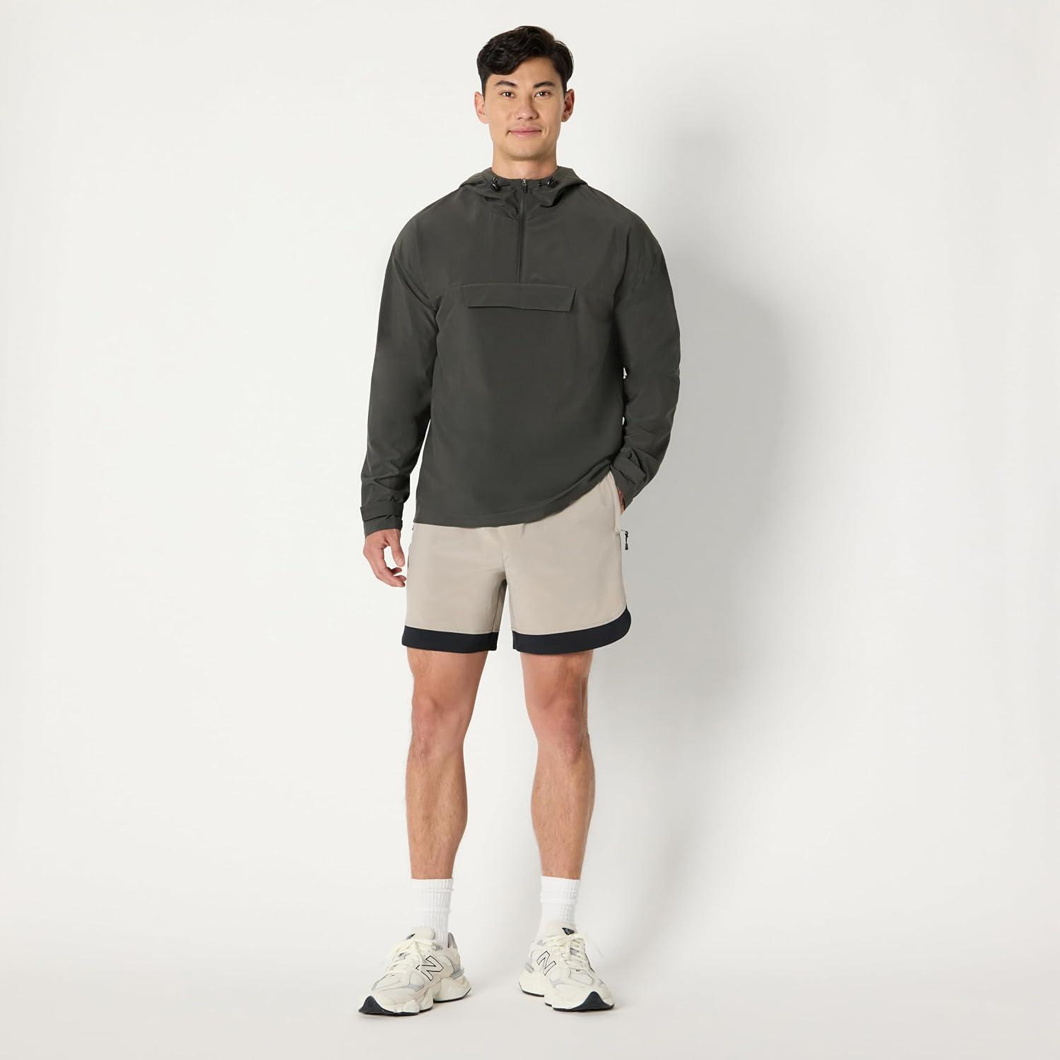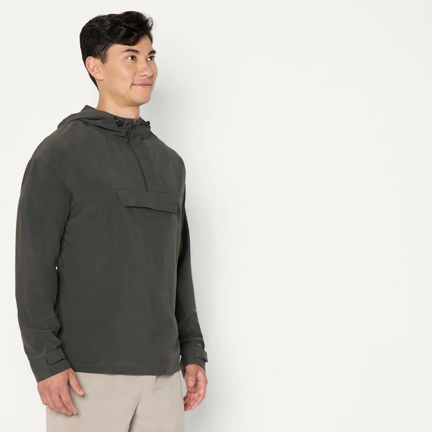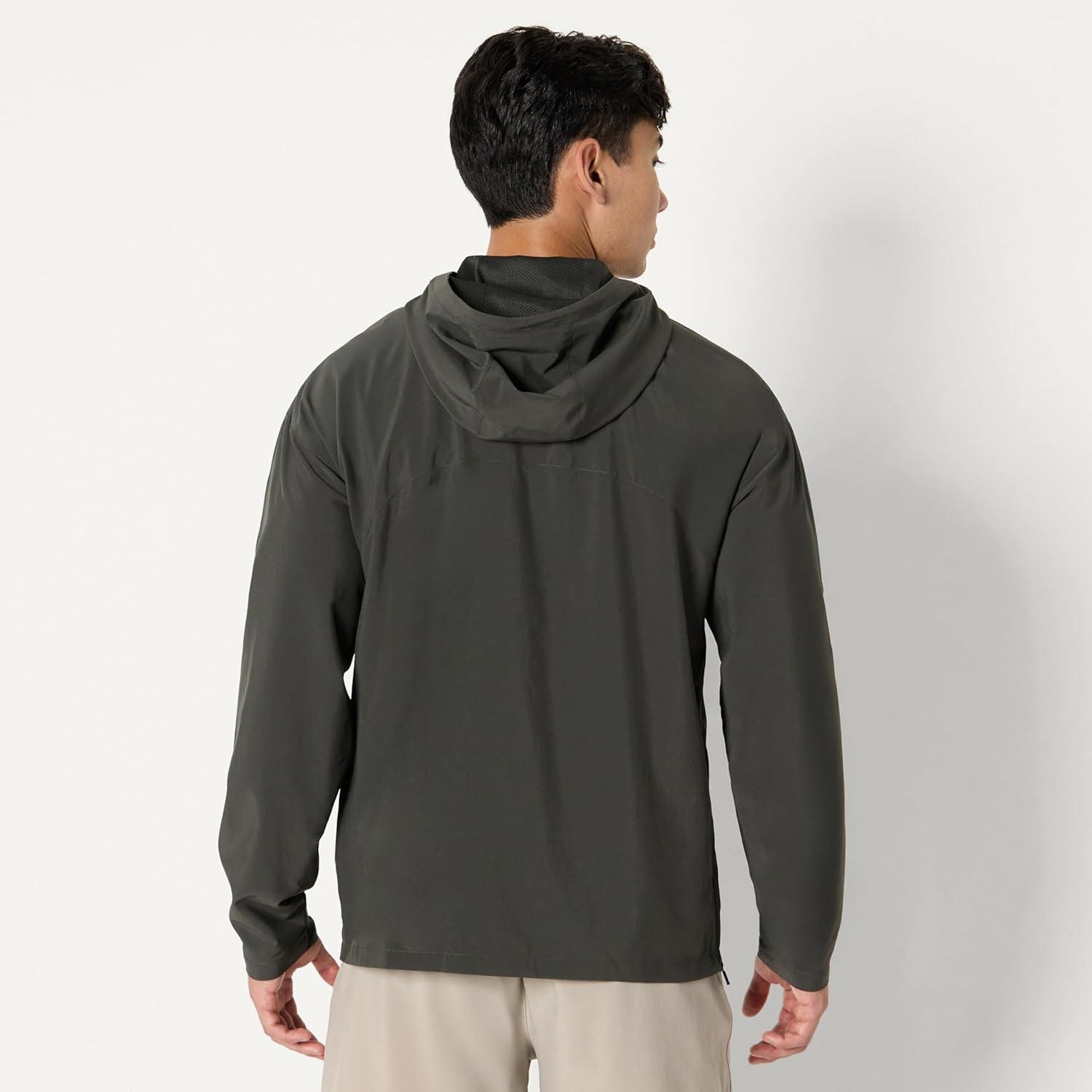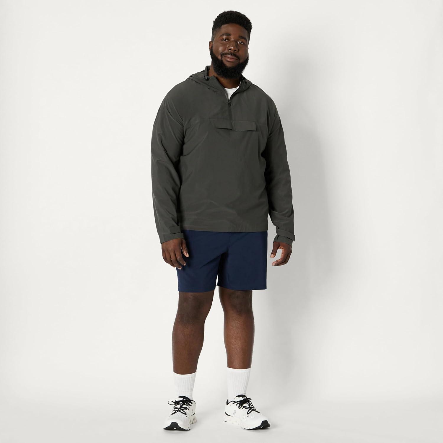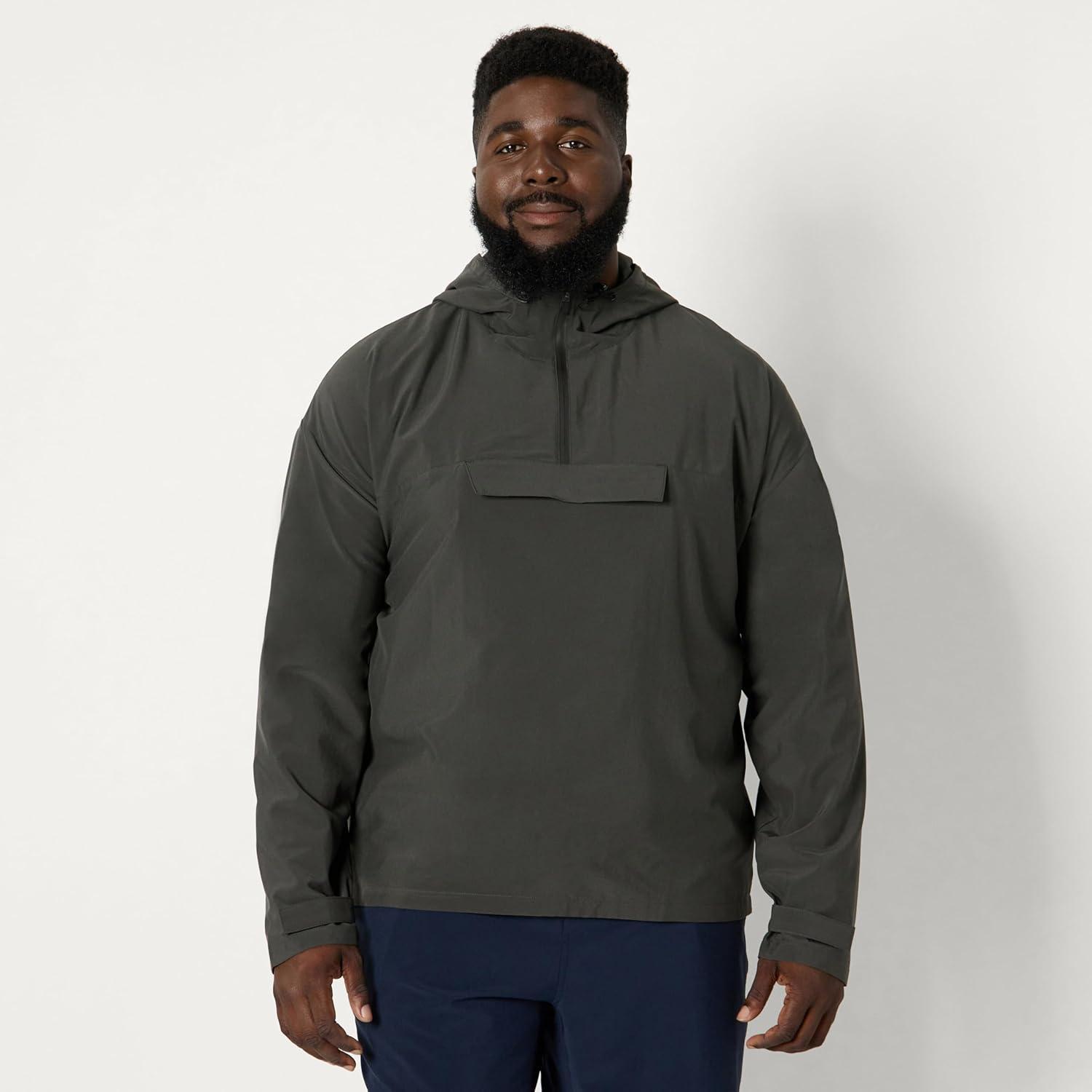 Amazon Essentials Mens Athletic Lightweight Stretch Woven Colorblock Anorak Hiking Running Jacket(Charcoal)