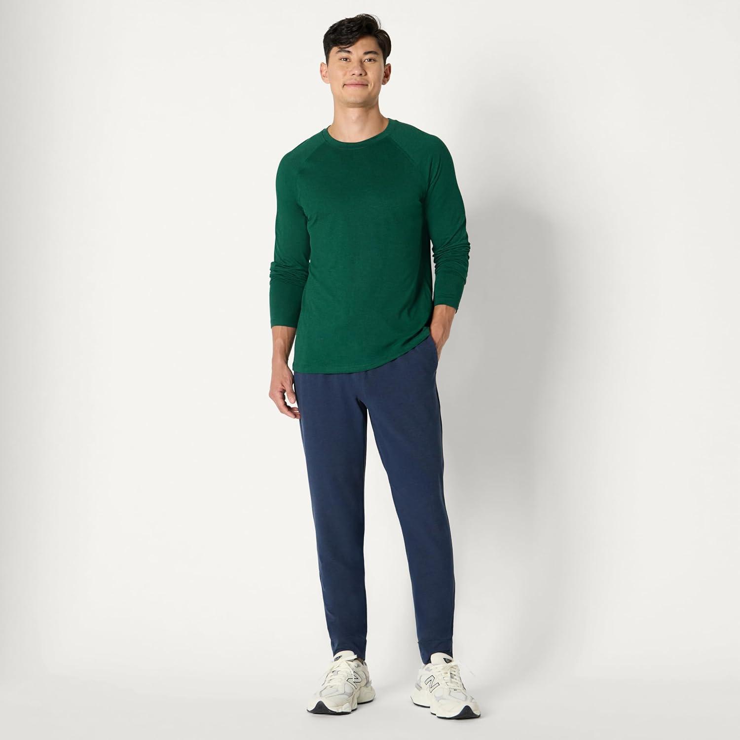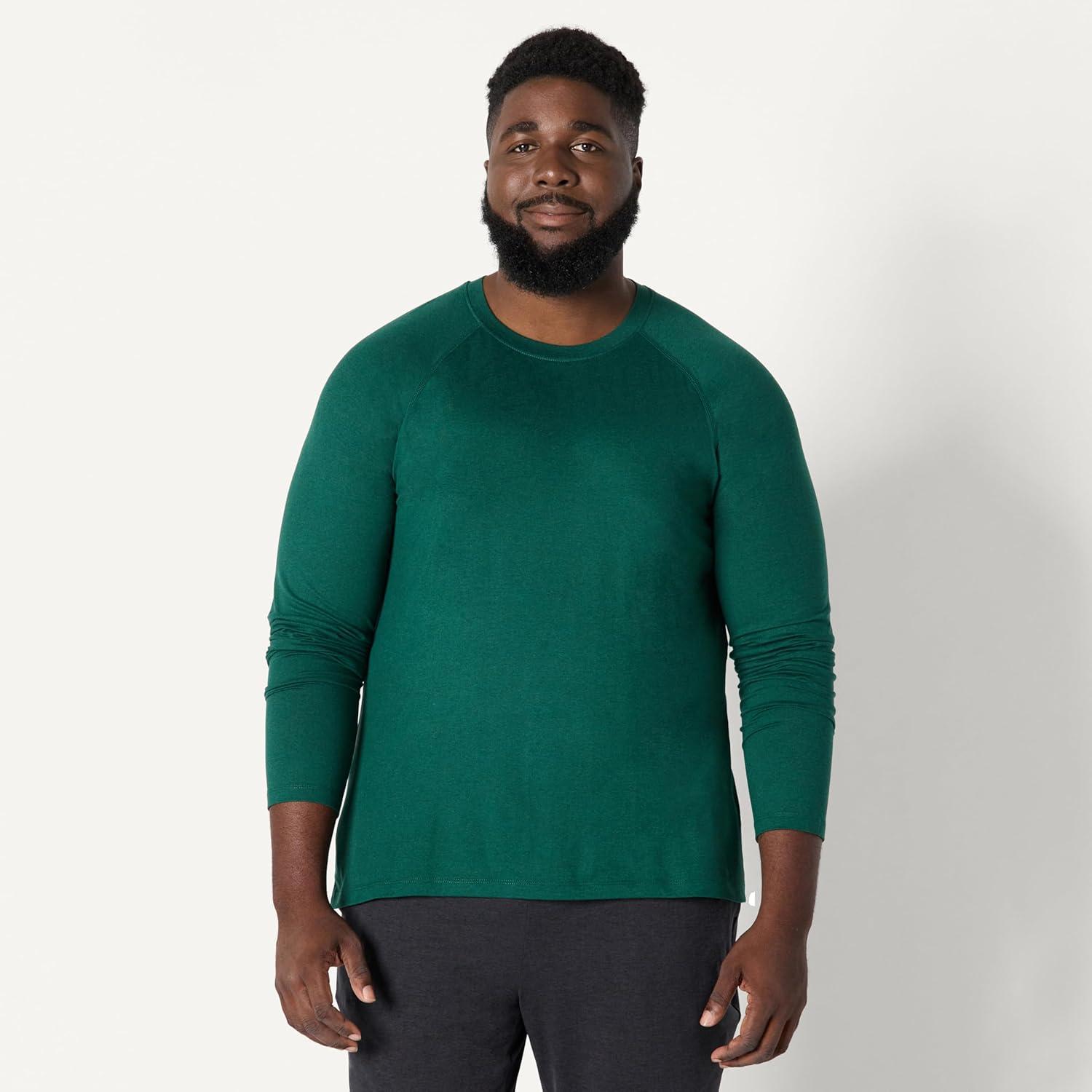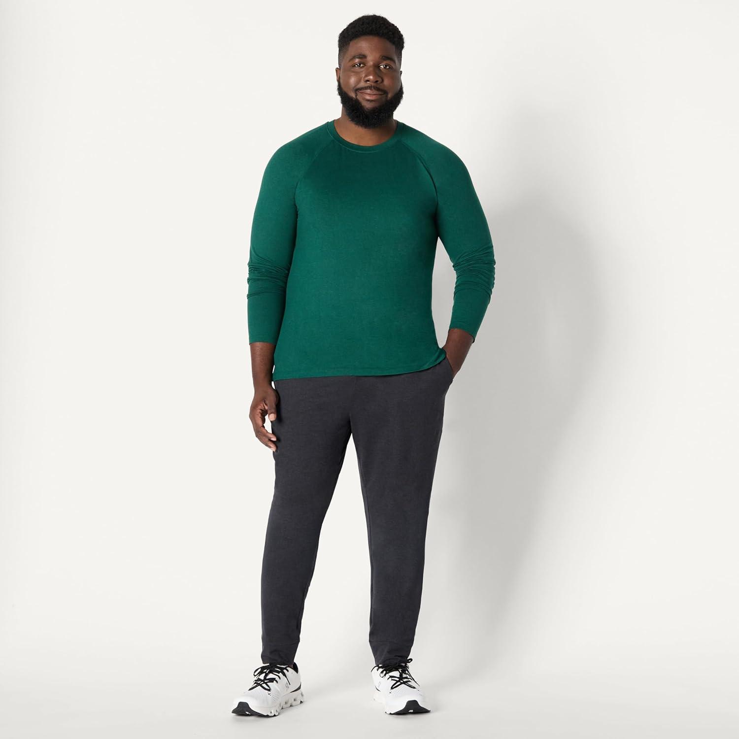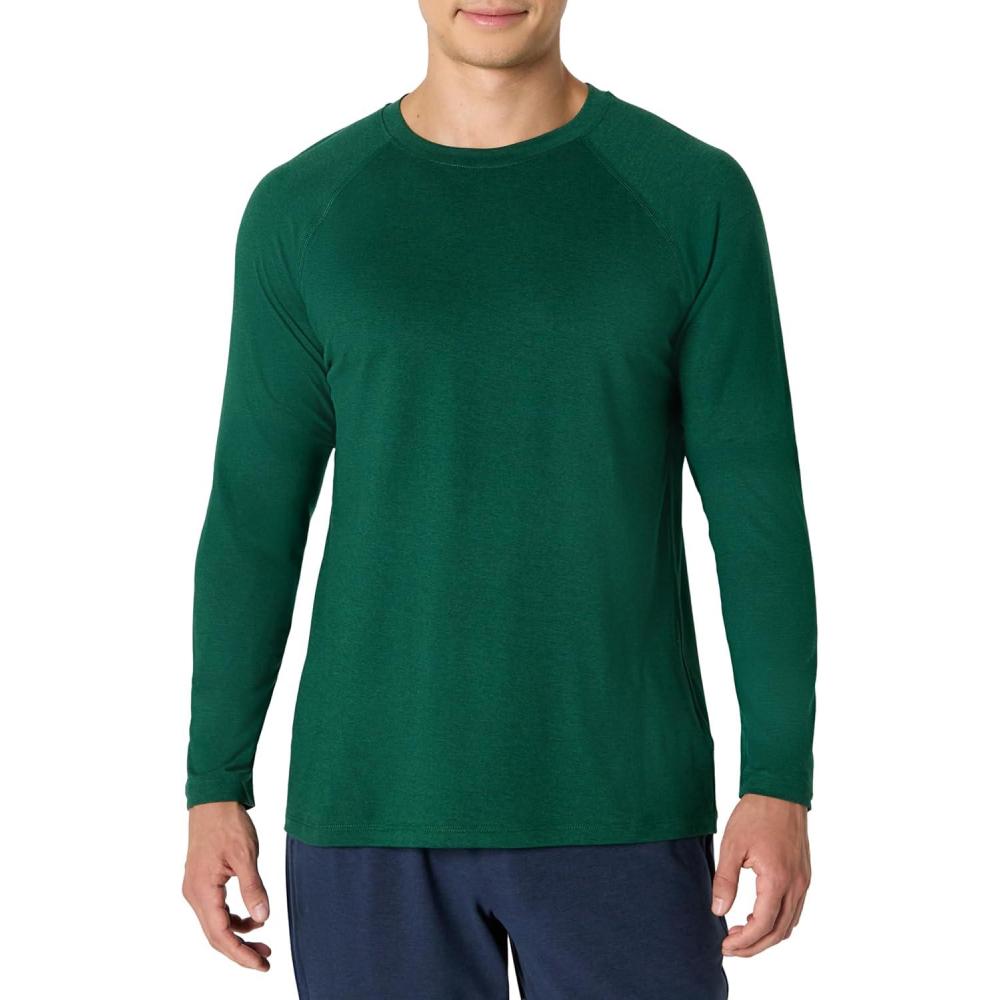 Amazon Essentials Mens Athletic Soft Performance Lightweight Long Sleeve Gym Workout Shirt(Space Dye Green)
