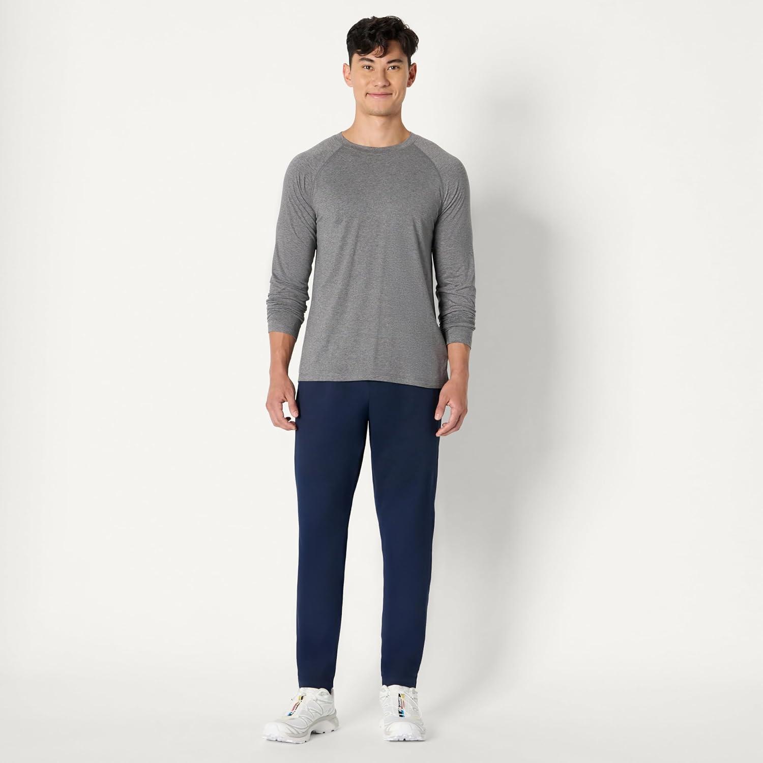 Amazon Essentials Mens Athletic Soft Performance Lightweight Long Sleeve Gym Workout Shirt(Space Dye Navy)