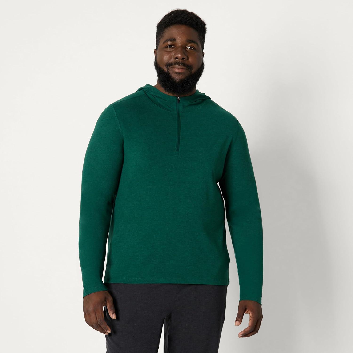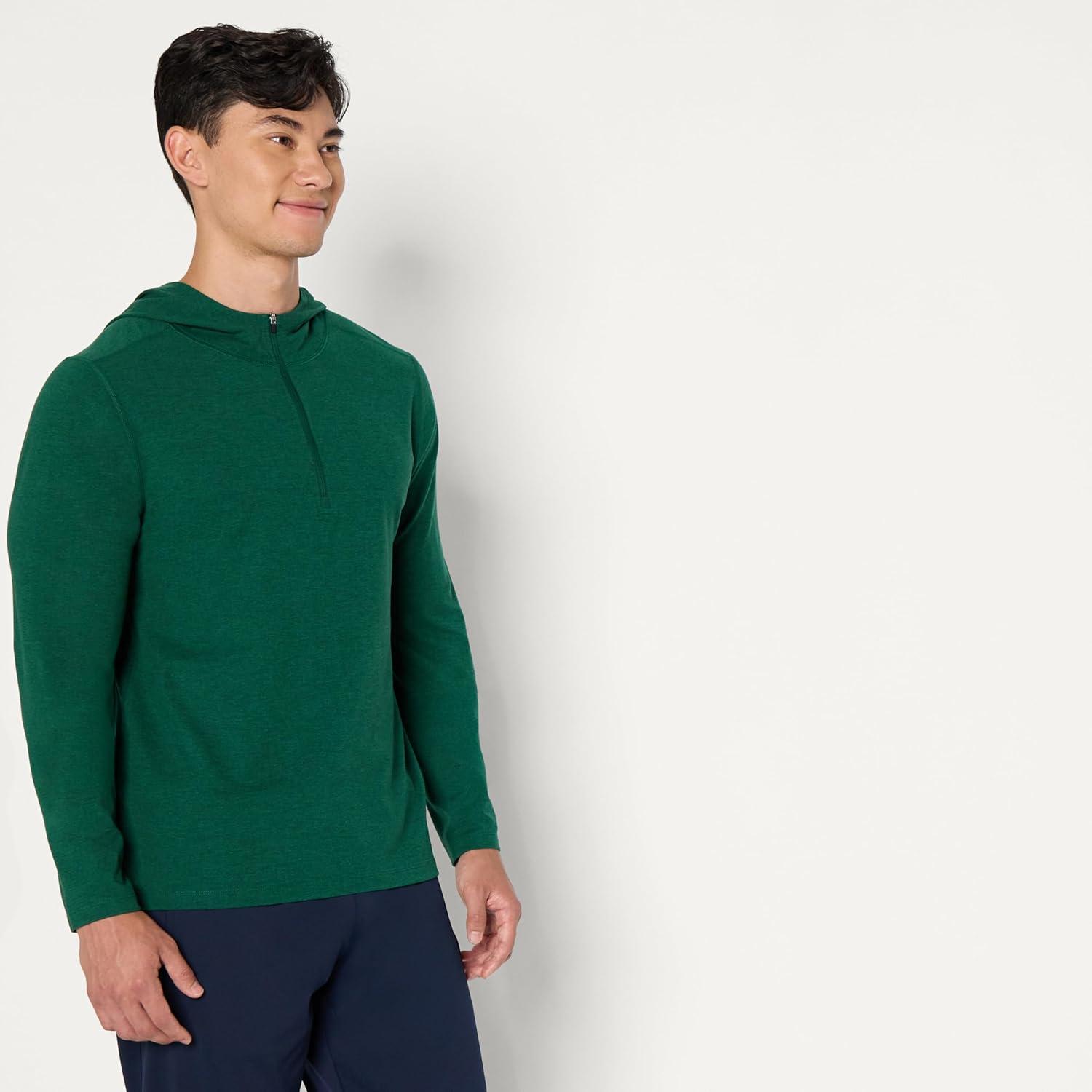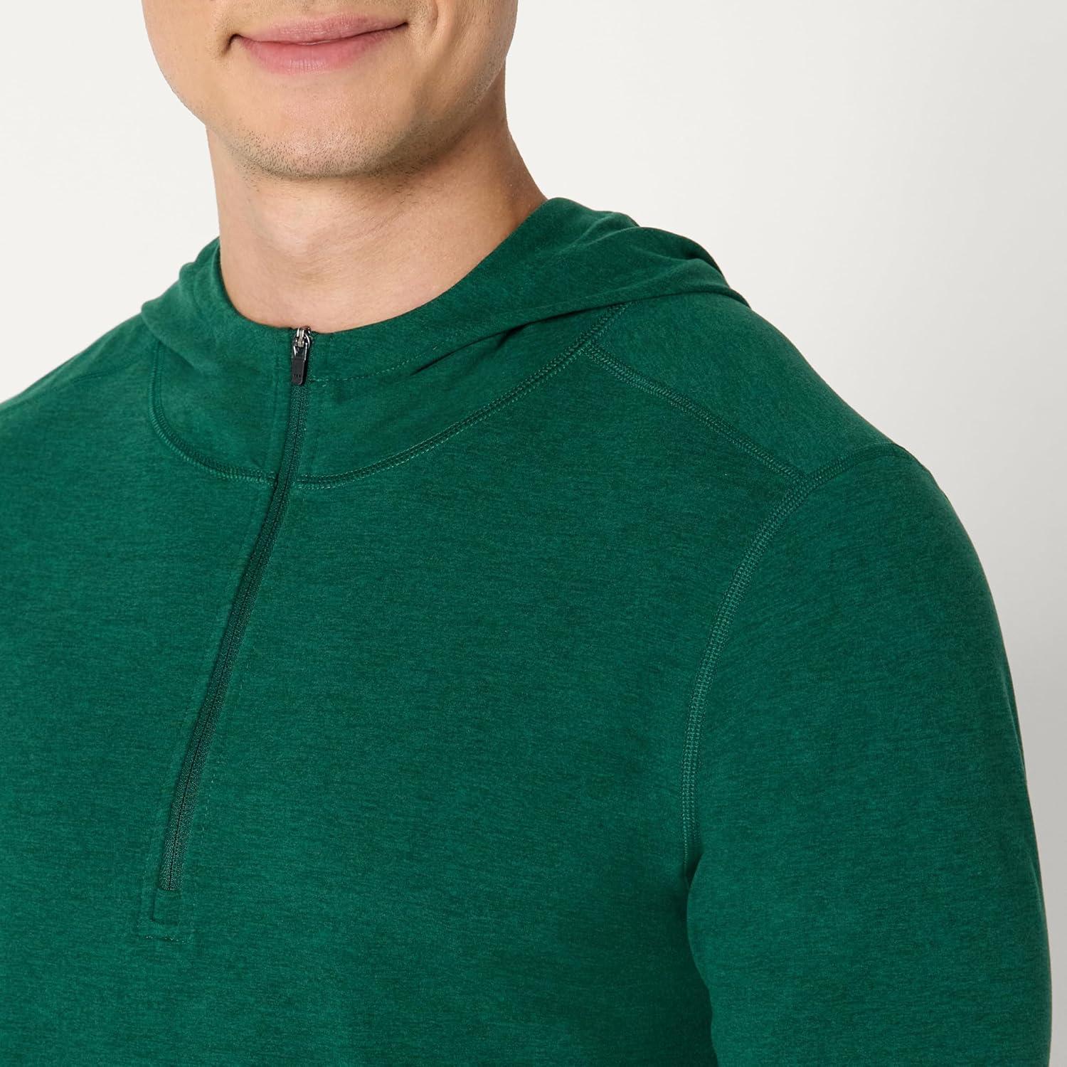 Amazon Essentials Mens Athletic Soft Performance Lightweight Quarter-Zip Hoodie Long Sleeve Workout Top(Space Dye Green)