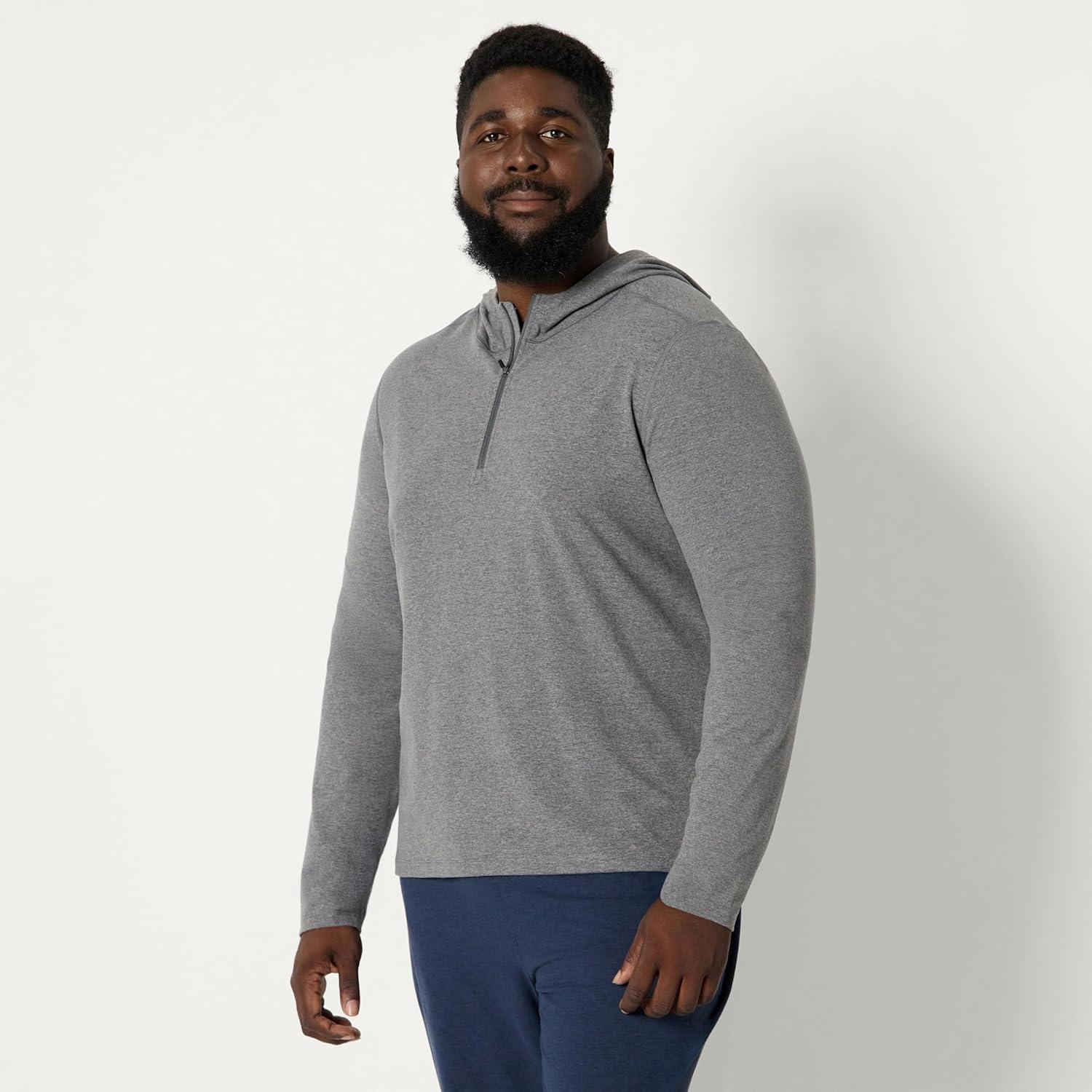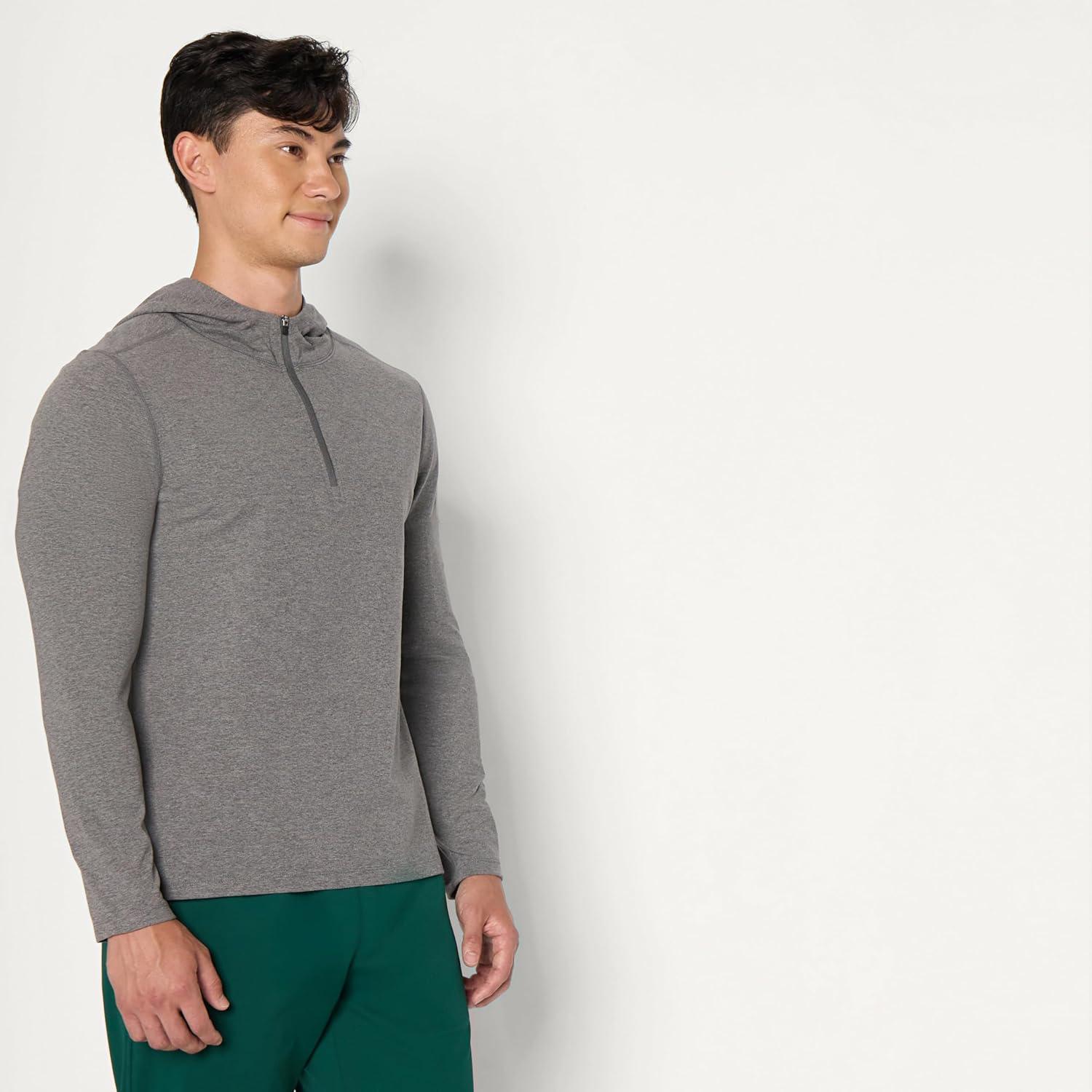 Amazon Essentials Mens Athletic Soft Performance Lightweight Quarter-Zip Hoodie Long Sleeve Workout Top(Space Dye Grey)