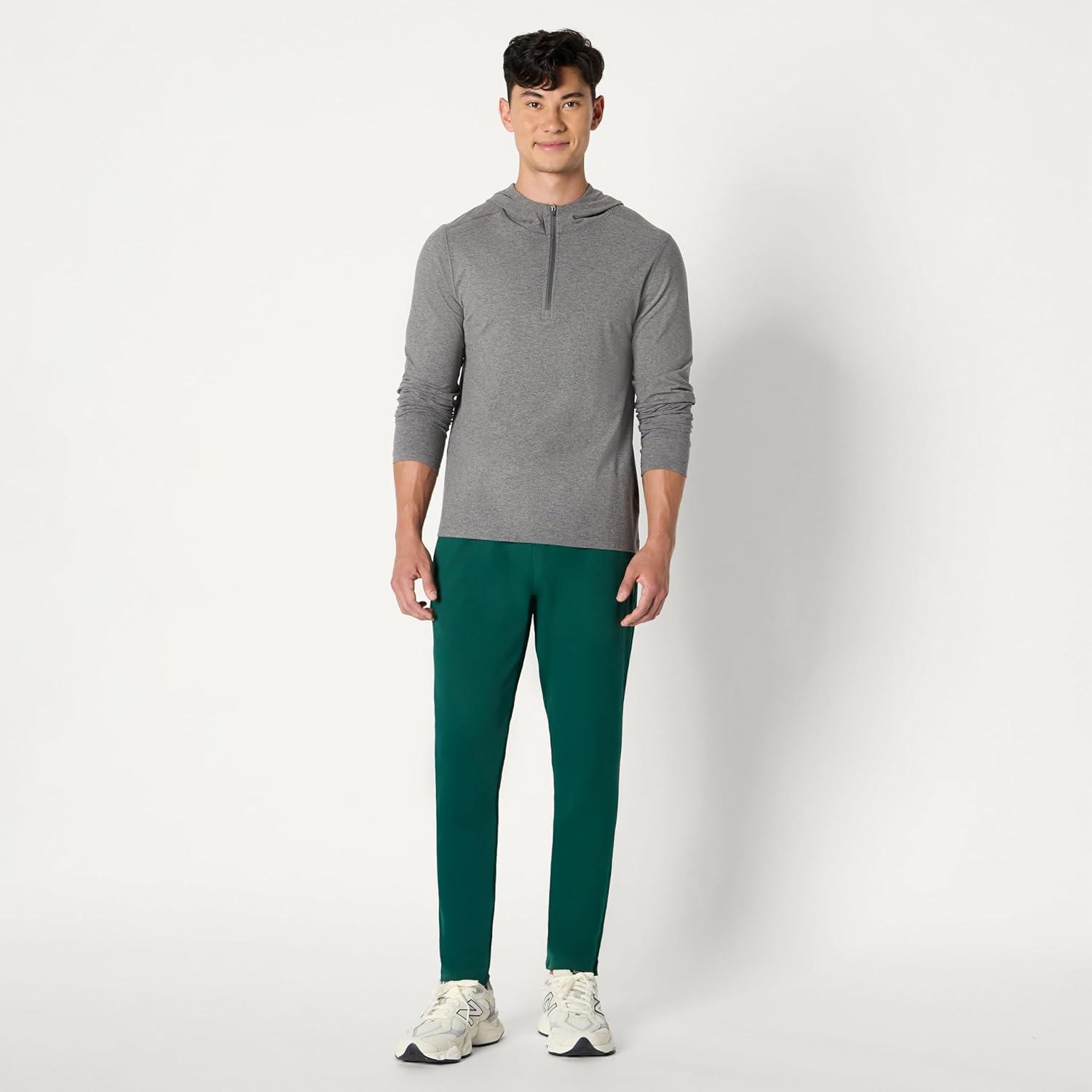Amazon Essentials Mens Athletic Soft Performance Lightweight Quarter-Zip Hoodie Long Sleeve Workout Top(Space Dye Green)