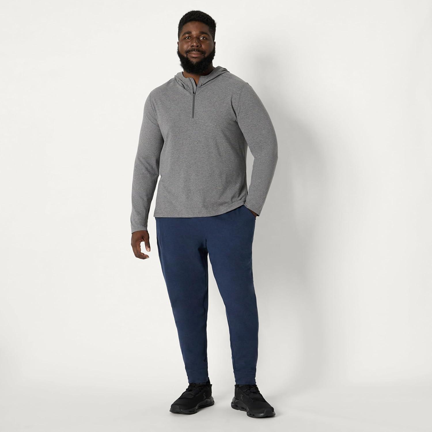 Amazon Essentials Mens Athletic Soft Performance Lightweight Quarter-Zip Hoodie Long Sleeve Workout Top(Space Dye Navy)