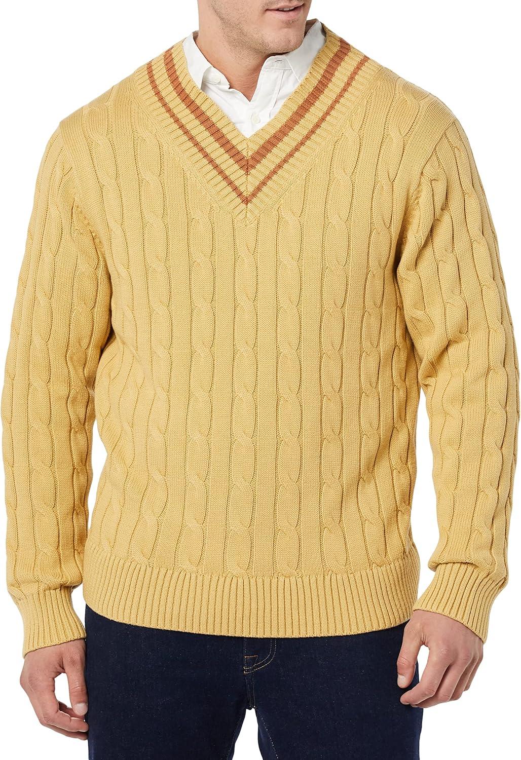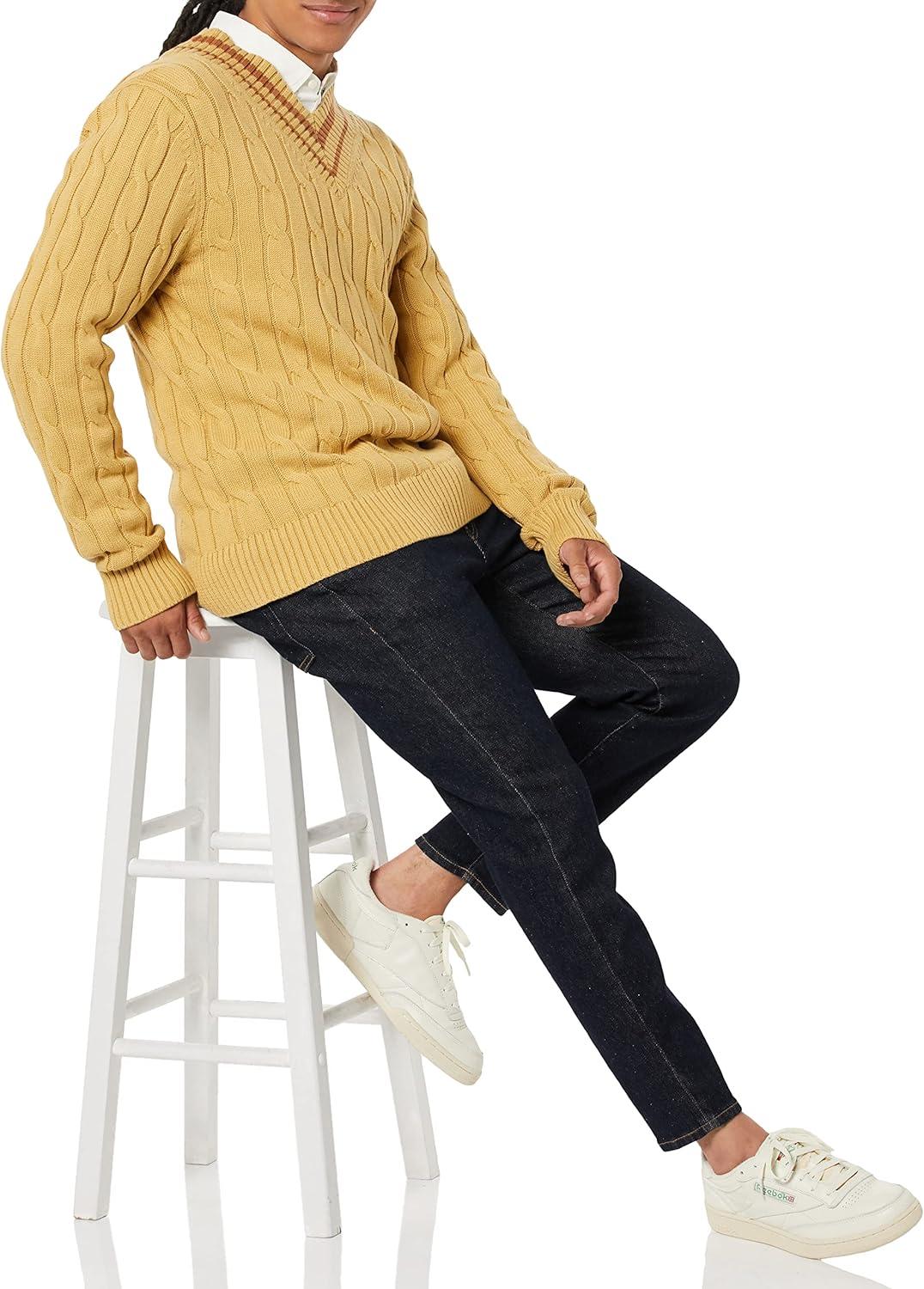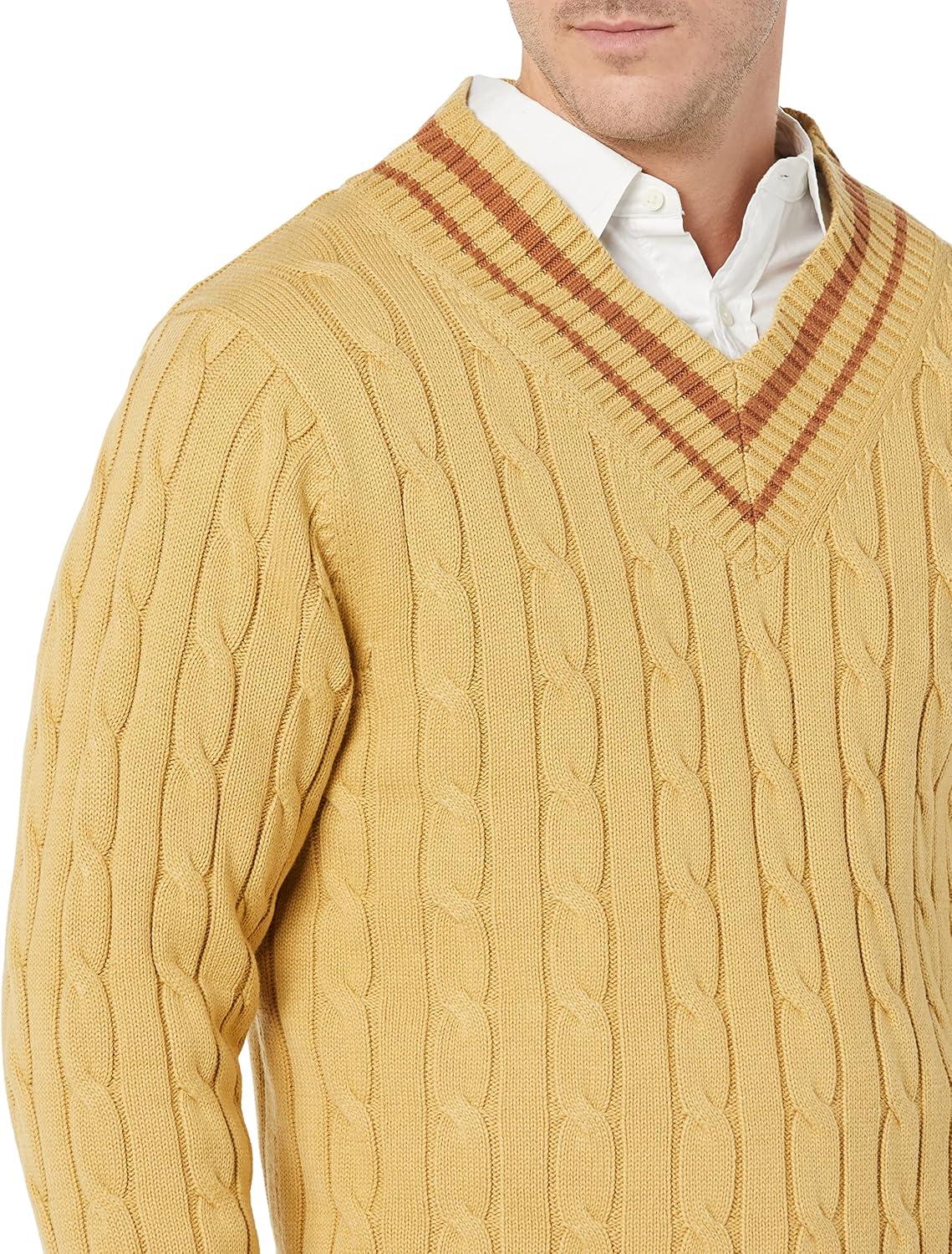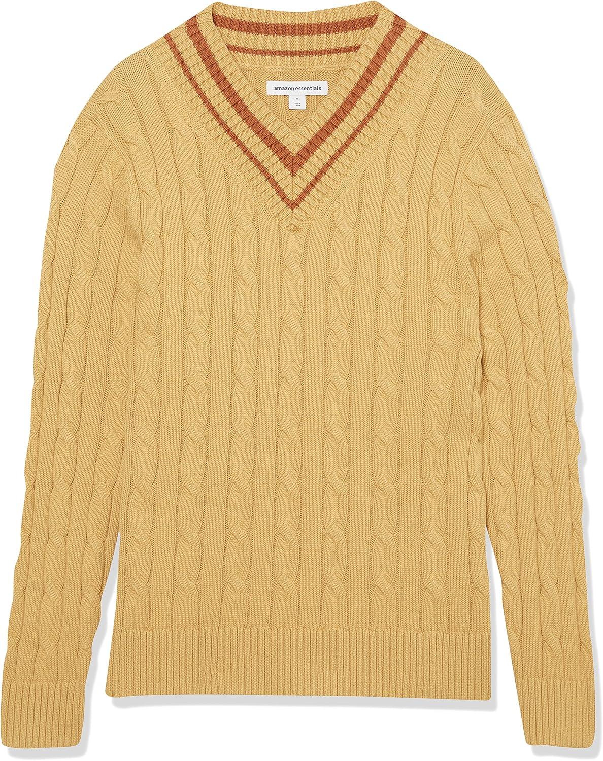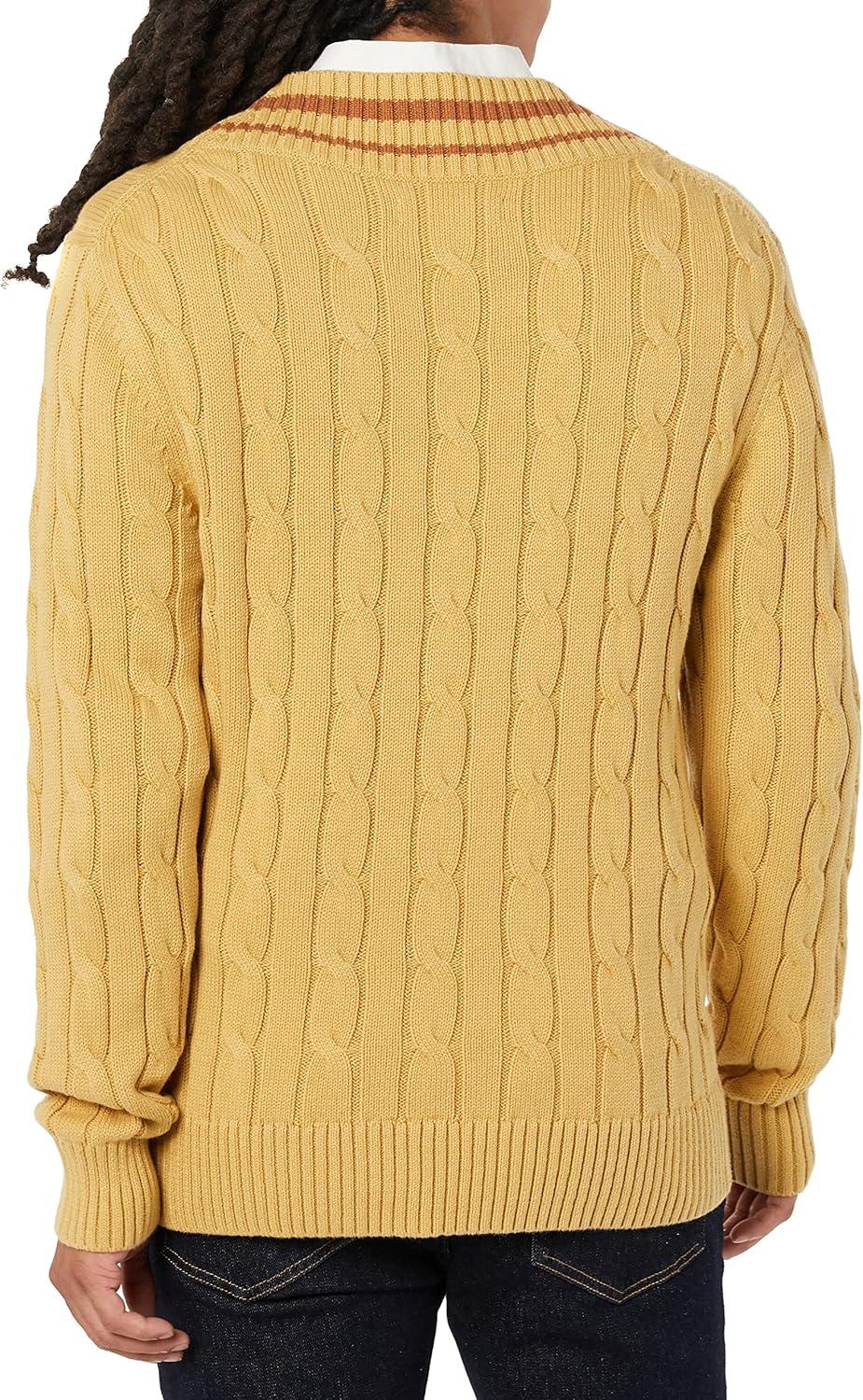 Amazon Essentials Men’s Cable Knit V-Neck Sweater(Tan)