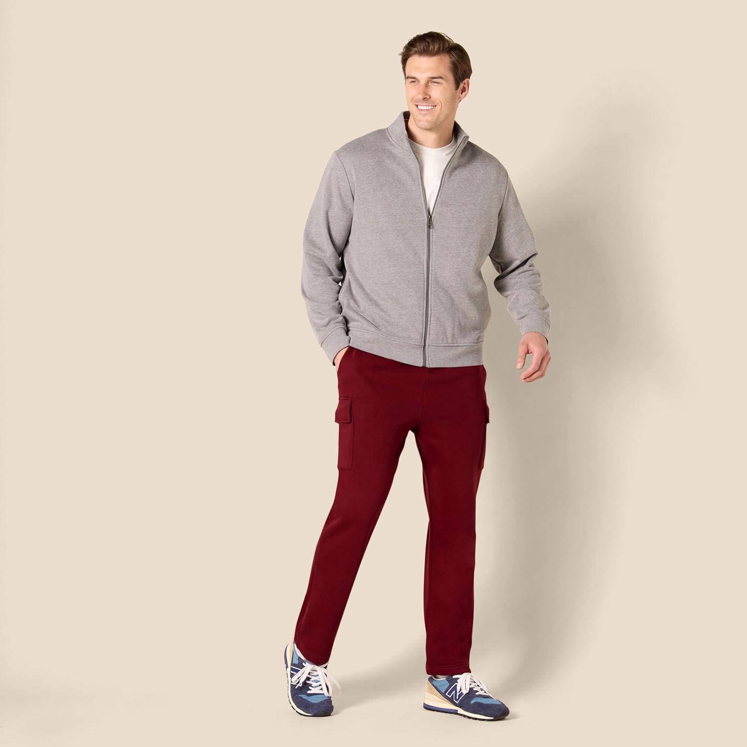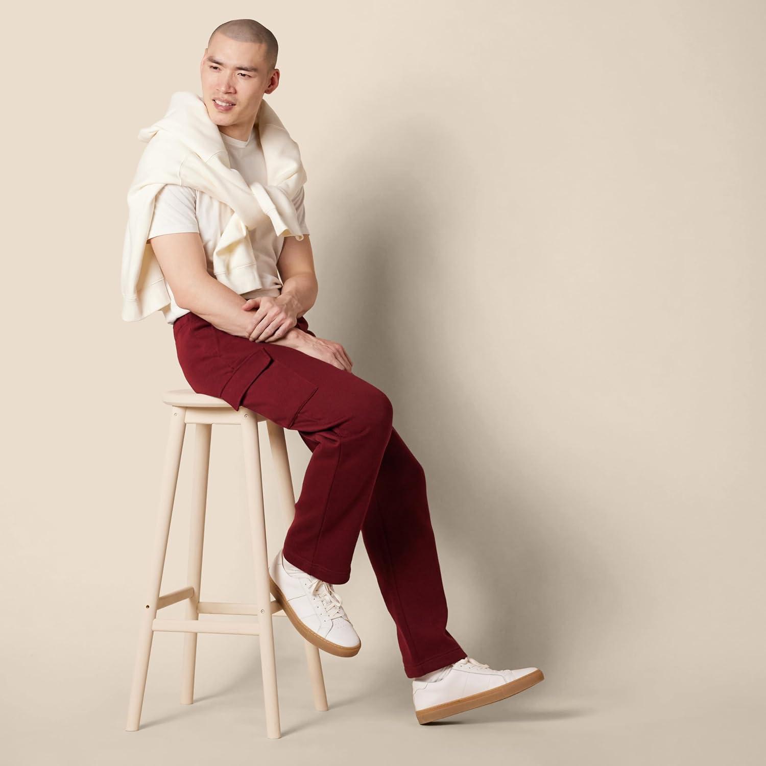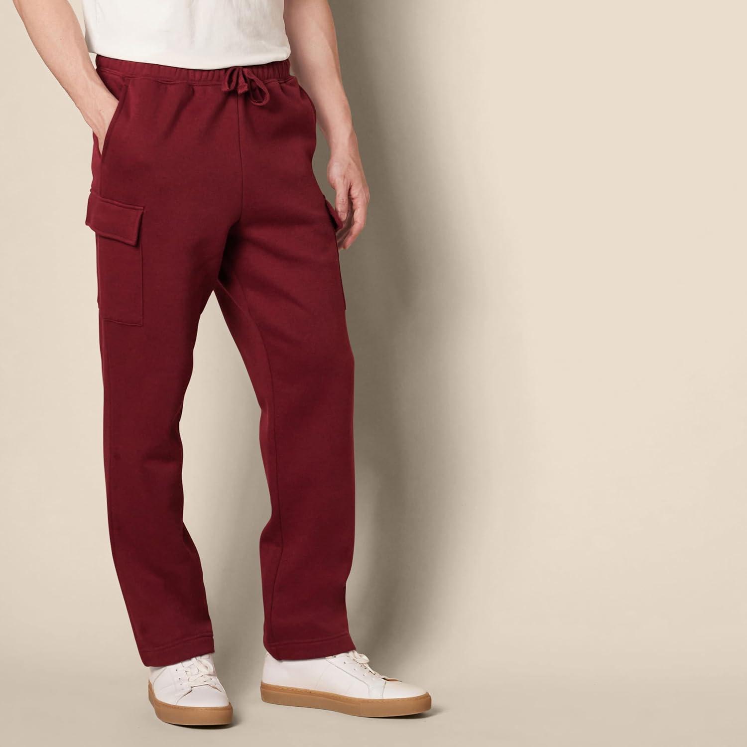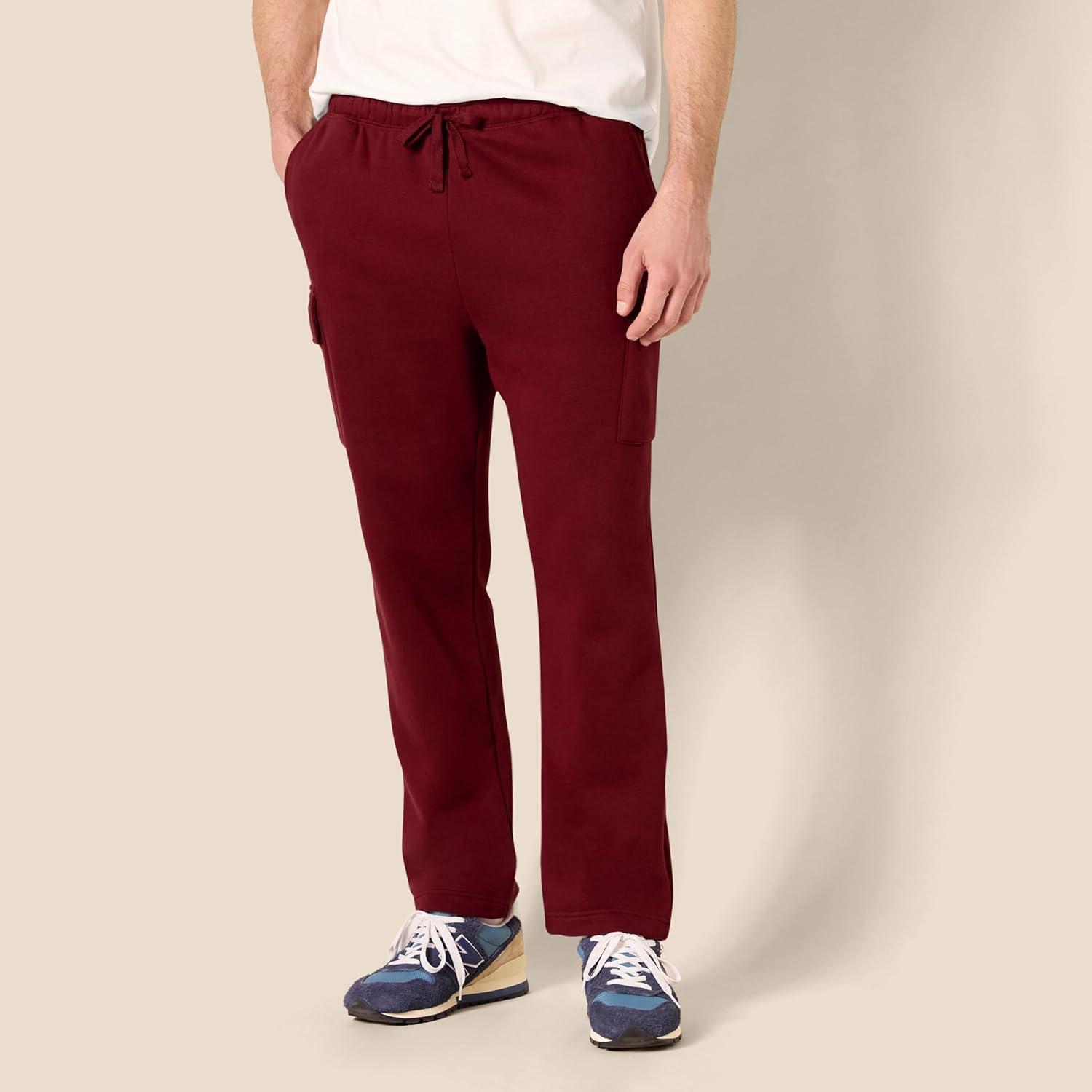 Amazon Essentials Men’s Cargo Fleece Sweatpant with Open Hem(Dark Red)