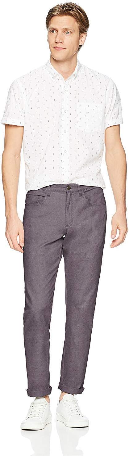 Transition effortlessly from casual to workwear with these versatile slim fit khaki pants for men. Tailored for a slim fit through the hip and thigh, these men's khaki pants feature a tapered leg that sits comfortably at the waist. Crafted from stretch cotton twill, these work pants offer flexibility for everyday wear. The light wash gives them a slightly lived-in feel. They are an excellent addition to both your casual and formal wardrobe. The shank button closure and zipper fly add a touch of practicality to these slim fit pants for men