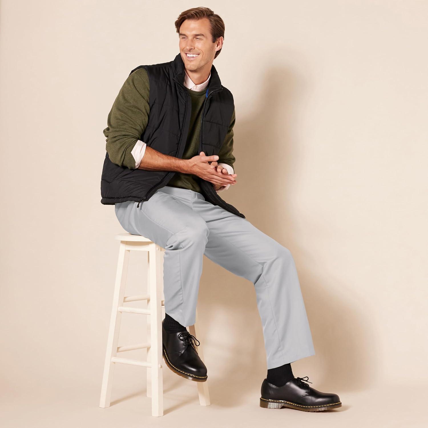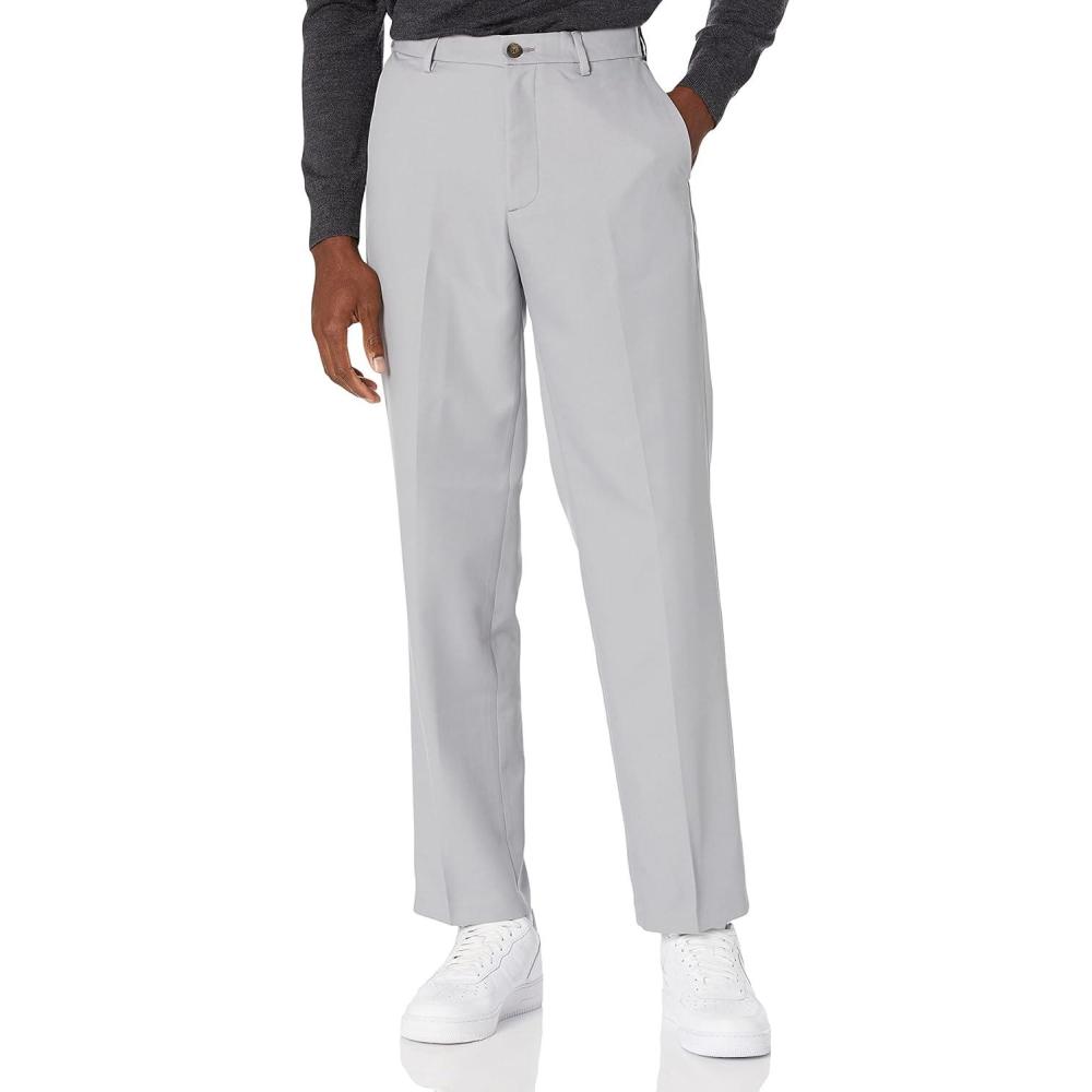Amazon Essentials Men’s Classic-Fit Expandable-Waist Flat-Front Dress Pant(Light Grey)