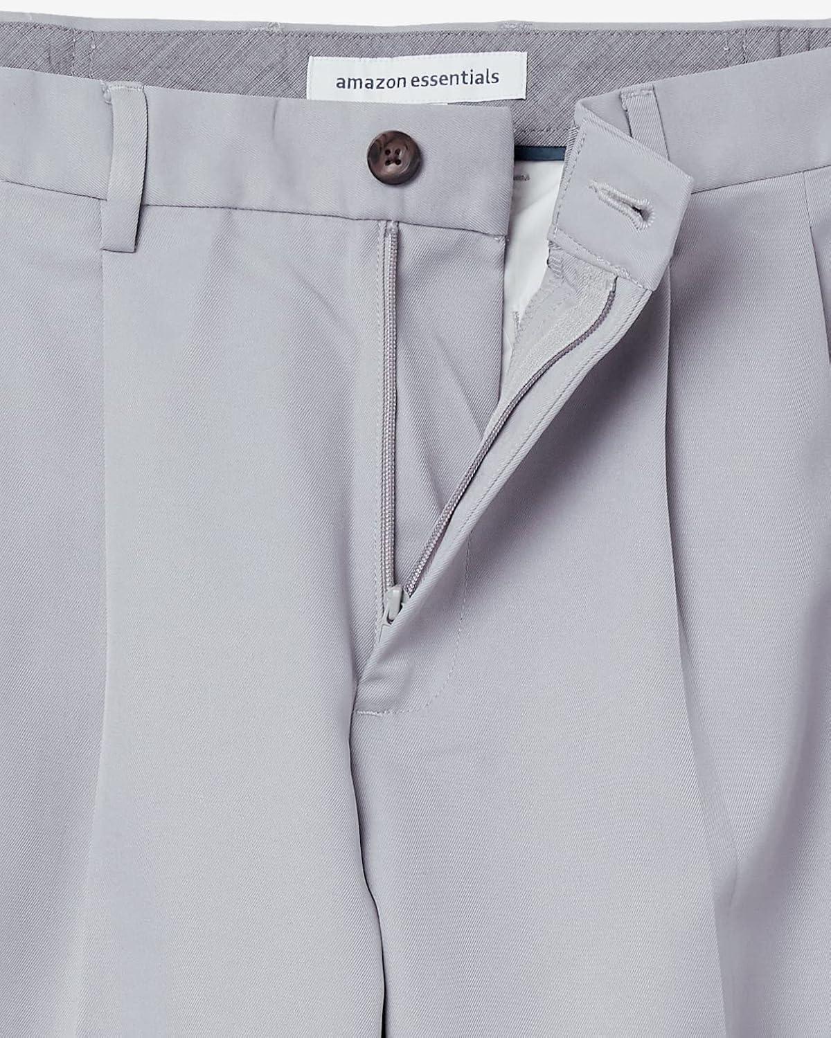 Amazon Essentials Men's Classic-Fit Expandable-Waist Pleated Dress Pant(Light Grey)