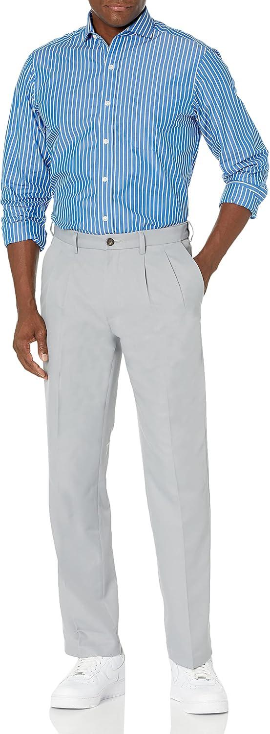 Amazon Essentials Men’s Classic-Fit Expandable-Waist Pleated Dress Pant(Light Grey)