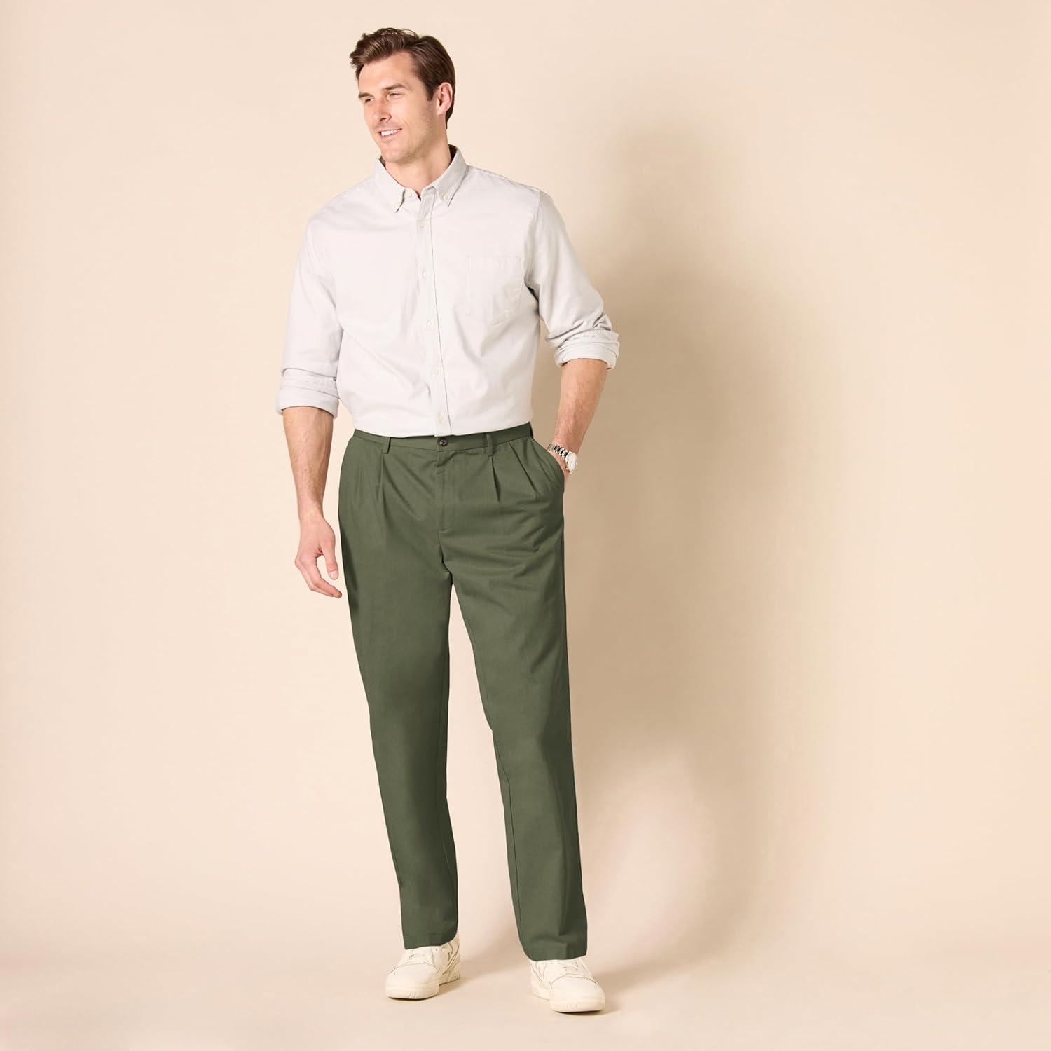 An Amazon Brand – A pleated dressy chino that offers classic style all week long; made to be wrinkle-resistant and easy-care with a traditional relaxed look and fit