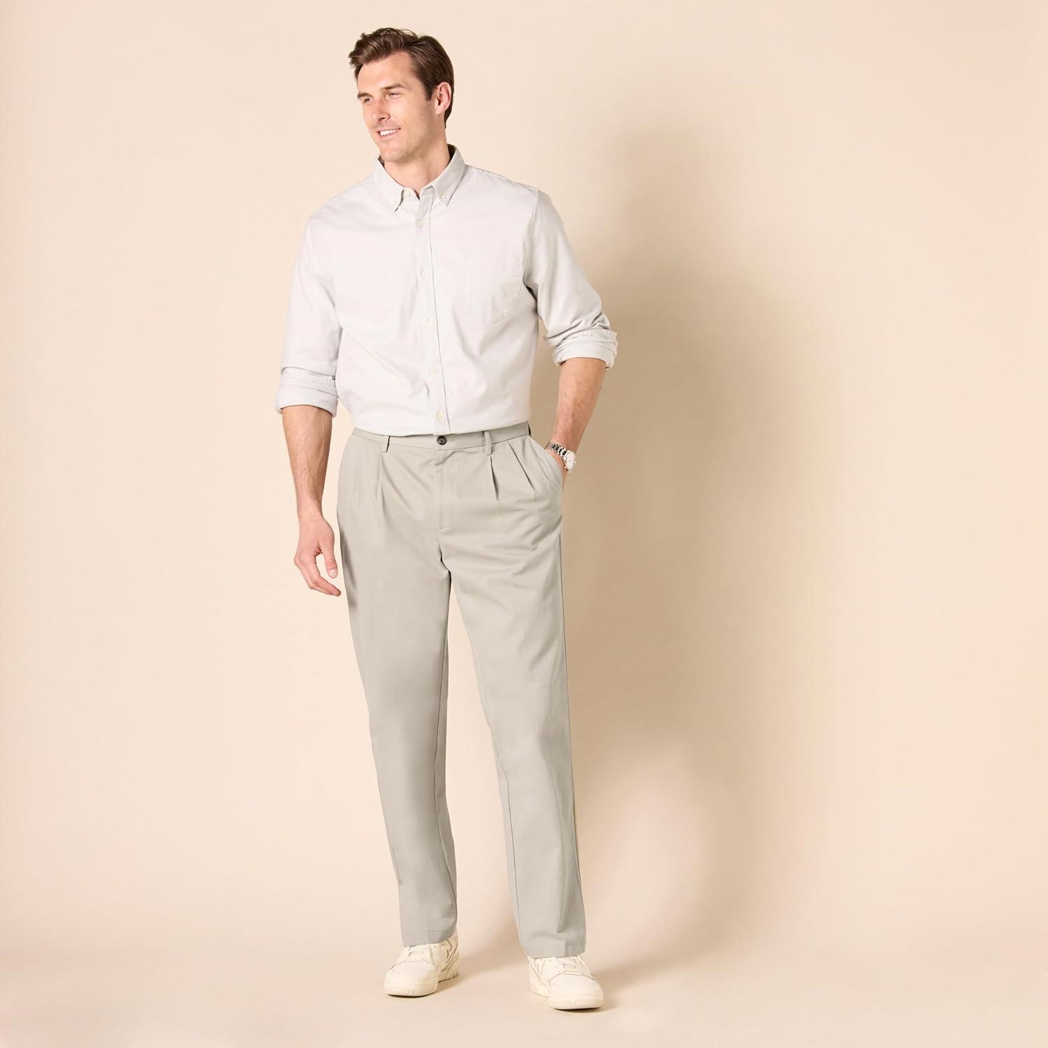 An Amazon Brand – A pleated dressy chino that offers classic style all week long; made to be wrinkle-resistant and easy-care with a traditional relaxed look and fit