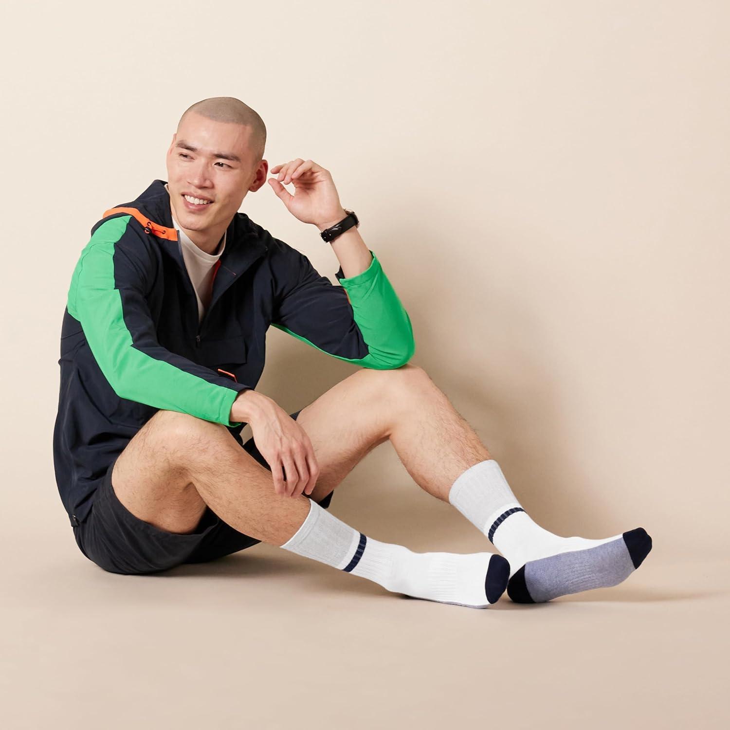 Amazon Essentials Men’s Colorblock Crew Sock, 6 Pairs(Grey/Navy/White)