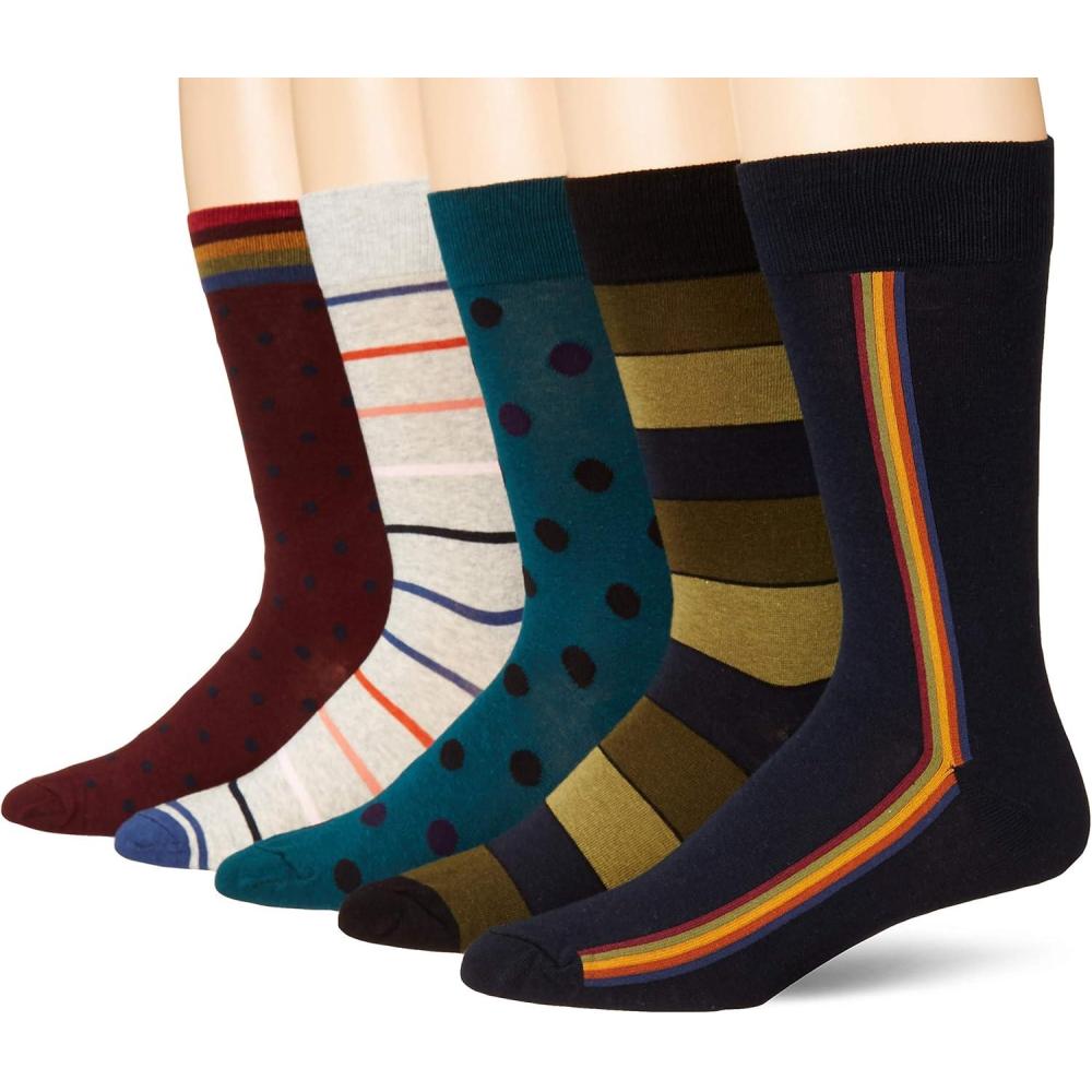 Amazon Essentials Mens Comfortable Patterned Dress Socks, 5 Pairs(Stripe/Dots)