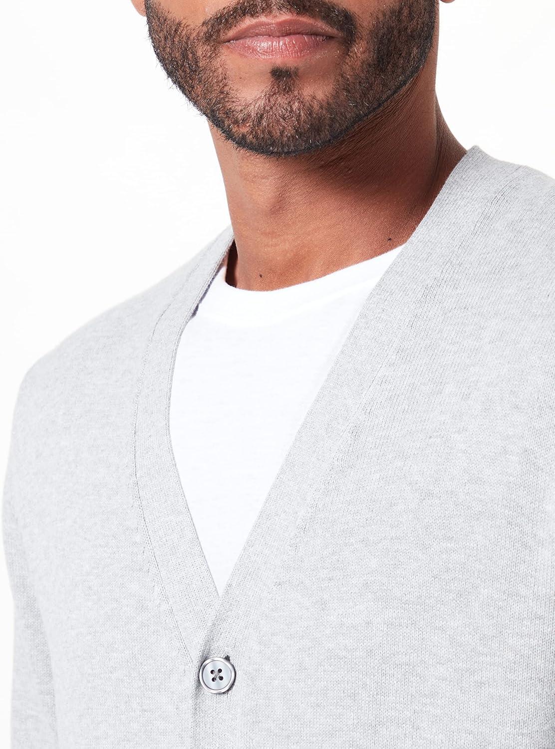 Amazon Essentials Men's Cotton Cardigan Sweater(Light Grey Heather)