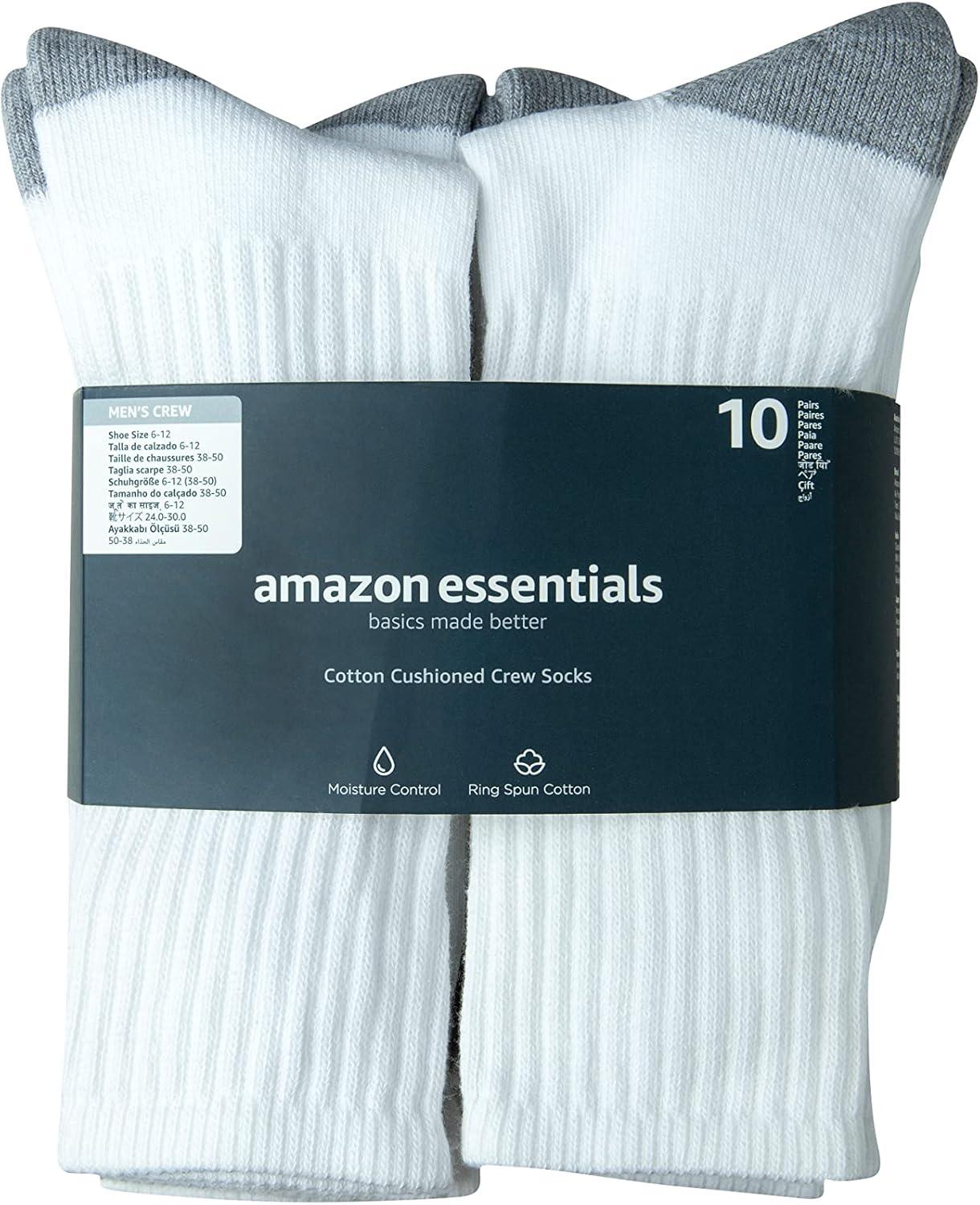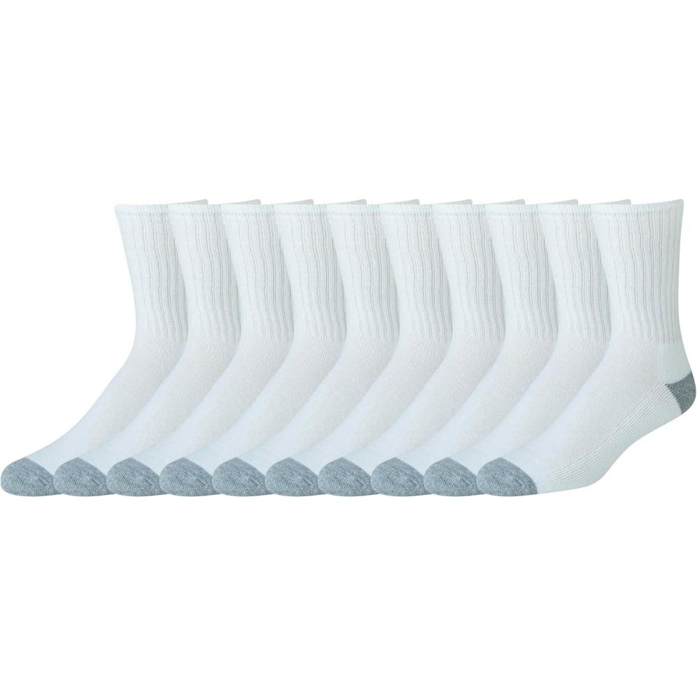 Specially designed as men's white crew socks, these cushioned white men's socks offer comfort with a smooth toe construction to minimize bulky seams. Made with a cotton-poly blend and a touch of elastane, these socks deliver an exceptional fit, maintaining shape and form even after multiple washes. The men's white crew socks provide a crew-height fit just under the calf, making them an ideal choice for both athletic and casual wear. Each pack includes 10 pairs of mid crew socks men can rely on, whether hitting the gym or running errands. Our goal of creating affordable, high-quality everyday clothing is evident in these versatile men's socks.
