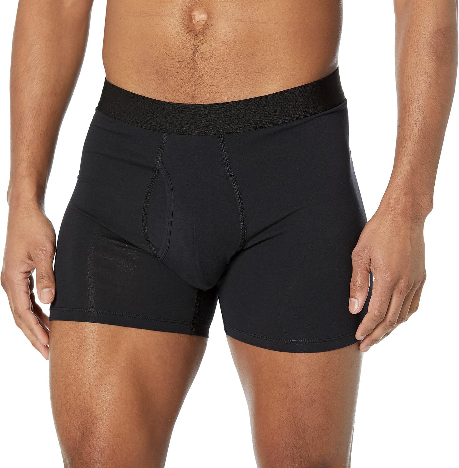 Amazon Essentials Men's Cotton Jersey Boxer Brief Underwear are available in a convenient pack of 5. These men's cotton boxer briefs are made from a soft, lightweight cotton jersey blend. They sit just below the waist and have a slim fit through the hip and leg openings. Our men's boxer briefs feature a contour pouch with a fly-flap at the front. The soft elastic waistband offers a secure fit, and the stitching at the leg openings is flexible.