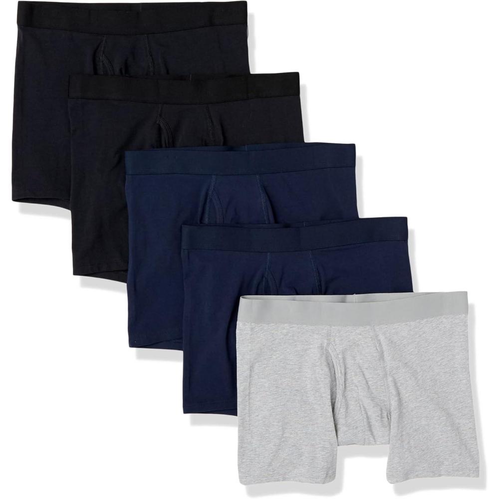 Amazon Essentials Men’s Cotton Jersey Boxer Briefs (Available in Big & Tall), 5-Pack(Black/Grey Heather/Navy)