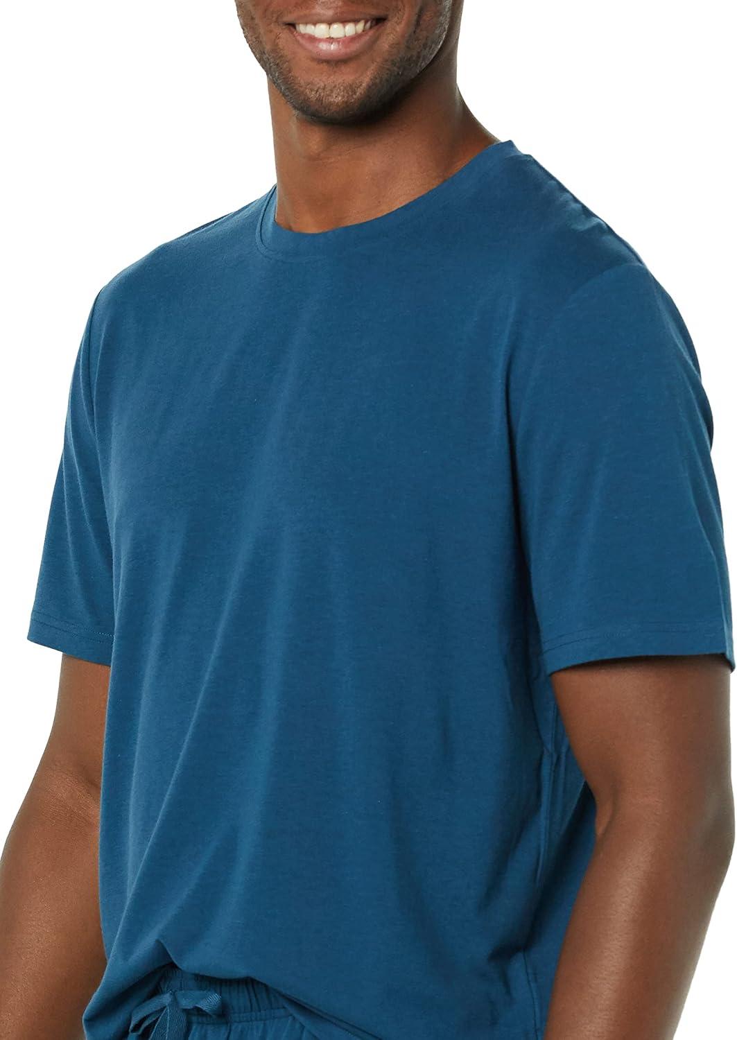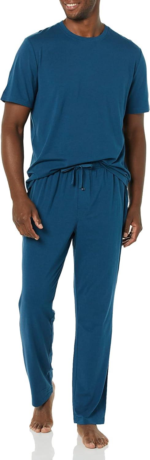 Amazon Essentials Men’s Cotton Modal T-Shirt and Full-Length Bottom Pajama Set(Dark Blue)