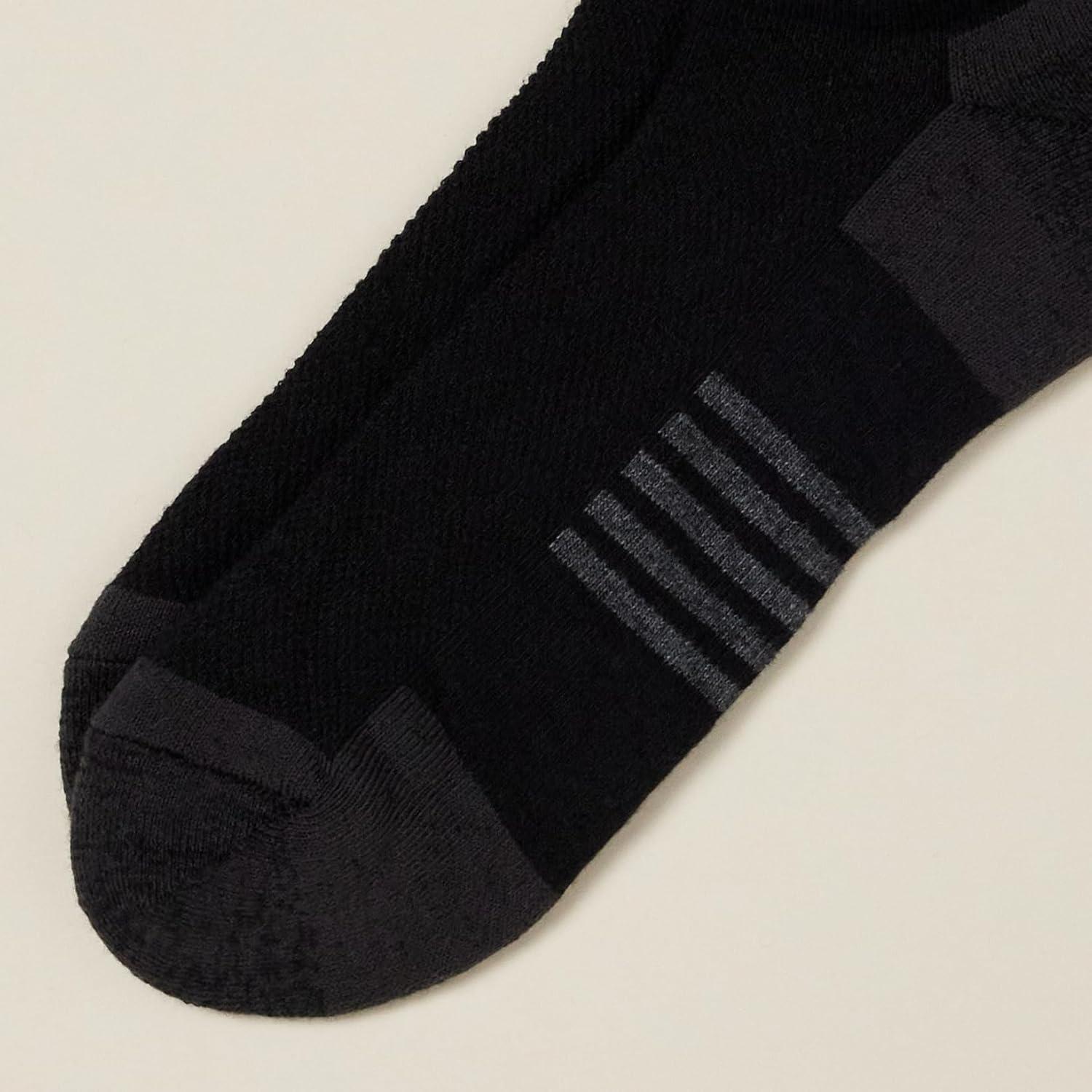 This no-show socks feature a smooth toe construction that eliminates bulky seams. The additional cushion at the toe and heel provides protection and durability. With zoned mesh panels, these socks offer ventilation and breathability, keeping your feet cool and comfortable during intense activities. Designed with arch compression, they provide support and stability, reducing foot fatigue throughout the day. Made from a high-quality cotton-poly blend with elastane, these socks deliver a superior fit, maintaining their shape wear after wear. Available in multiple colors, the socks come in a convenient pack of six pairs.