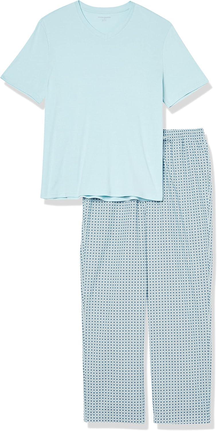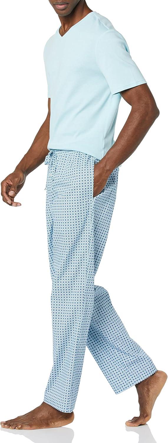 Amazon Essentials Men’s Cotton Poplin Pant with Cotton Jersey T-Shirt Pajama Set(Light Blue Geo Print)