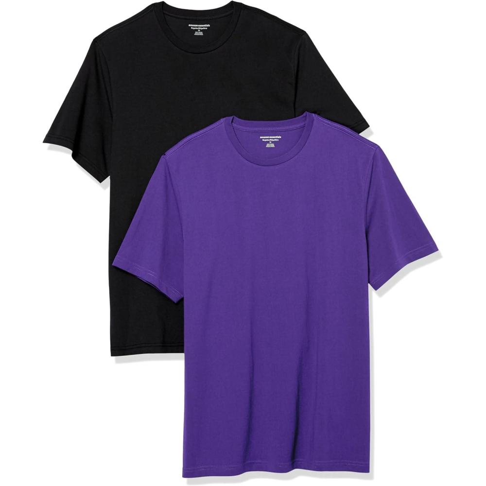 Amazon Essentials Men’s Cotton Regular-Fit Short-Sleeve Crewneck T-Shirt, Pack of 2(Black/Dark Purple)