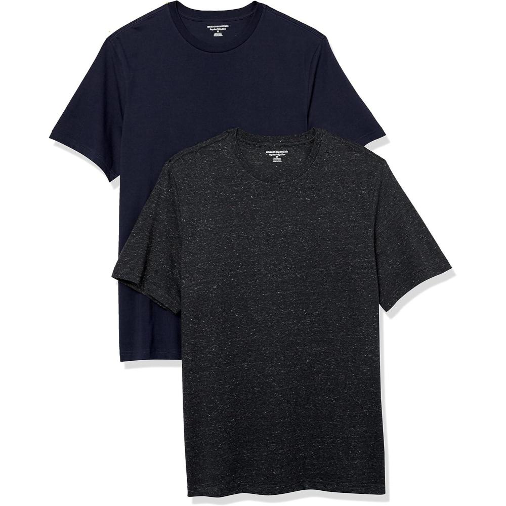 Amazon Essentials Men’s Cotton Regular-Fit Short-Sleeve Crewneck T-Shirt, Pack of 2(Charcoal Heather/Navy)