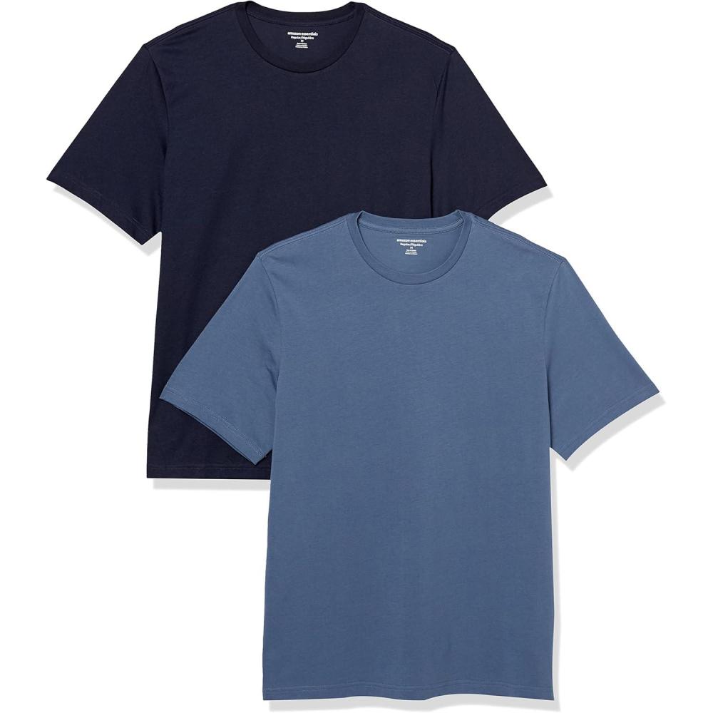 Amazon Essentials Men’s Cotton Regular-Fit Short-Sleeve Crewneck T-Shirt, Pack of 2(Dark Blue/Navy)