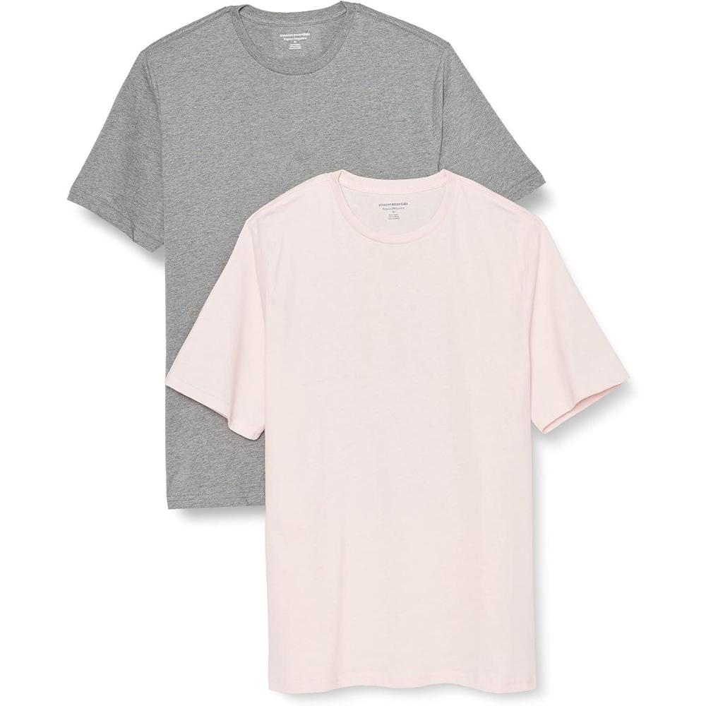 Amazon Essentials Men’s Cotton Regular-Fit Short-Sleeve Crewneck T-Shirt, Pack of 2(Grey Heather/Pale Pink)