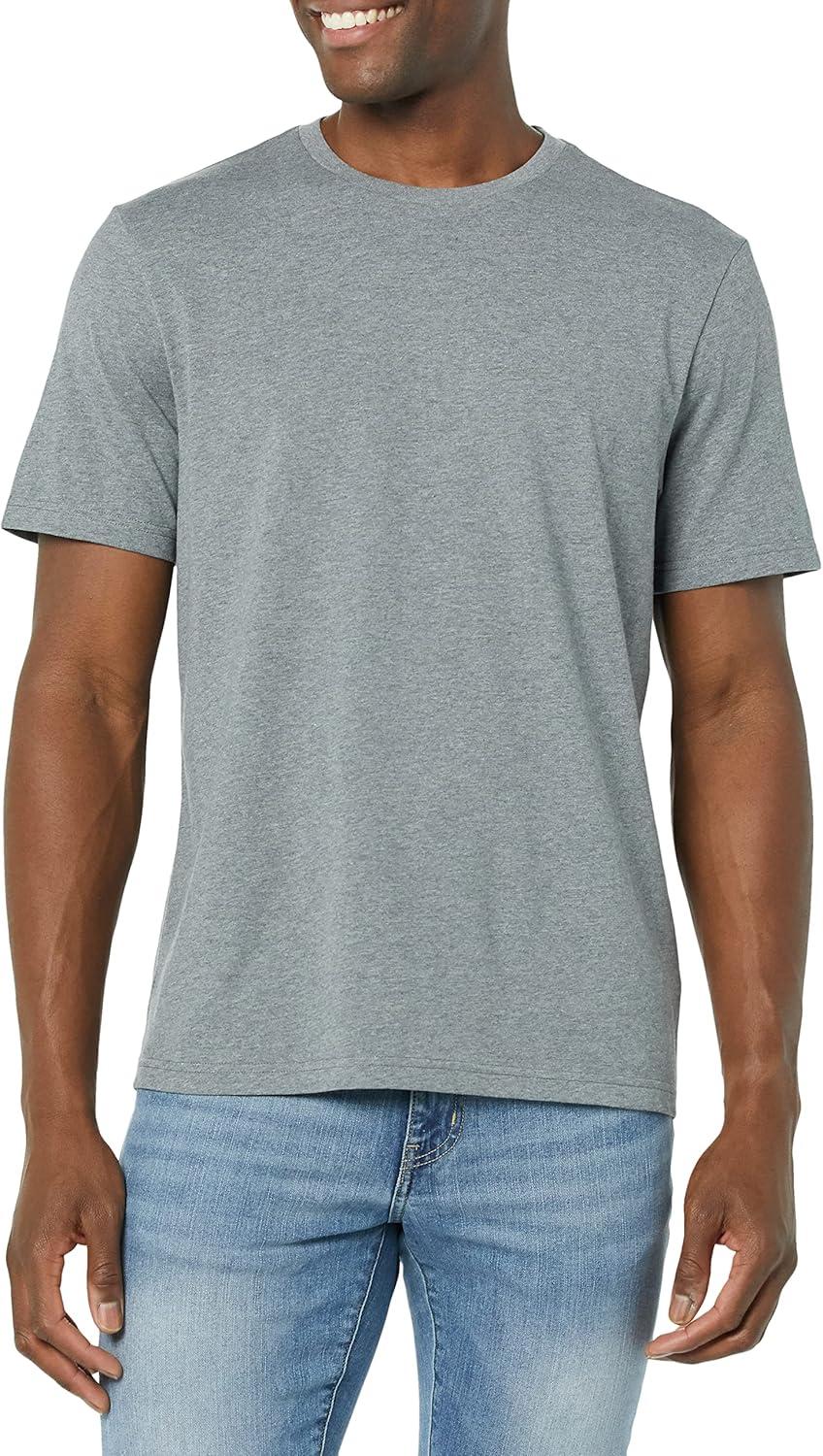 The Amazon Essentials Men's T-Shirt Pack offers both a Solid and Heathers option. This pack of men’s cotton tees is crafted from a premium blend that offers a lightweight feel and lasting durability. With a regular fit through the shoulders, chest, and waist, these plain t-shirts are an essential addition to your wardrobe. This clothing for men are designed with durability and style, featuring a classic crew neckline, short sleeves, and a tagless label