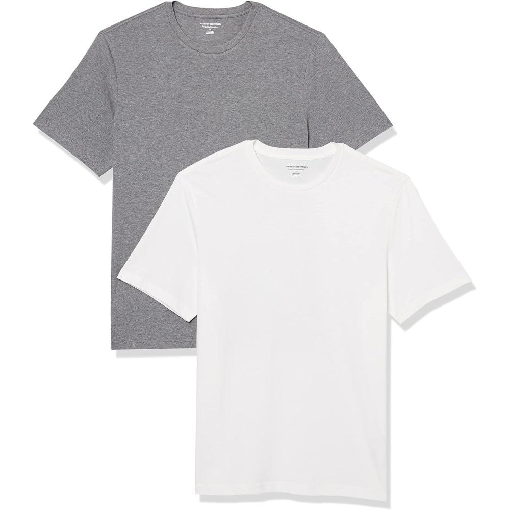 Amazon Essentials Men’s Cotton Regular-Fit Short-Sleeve Crewneck T-Shirt, Pack of 2(Grey Heather/White)