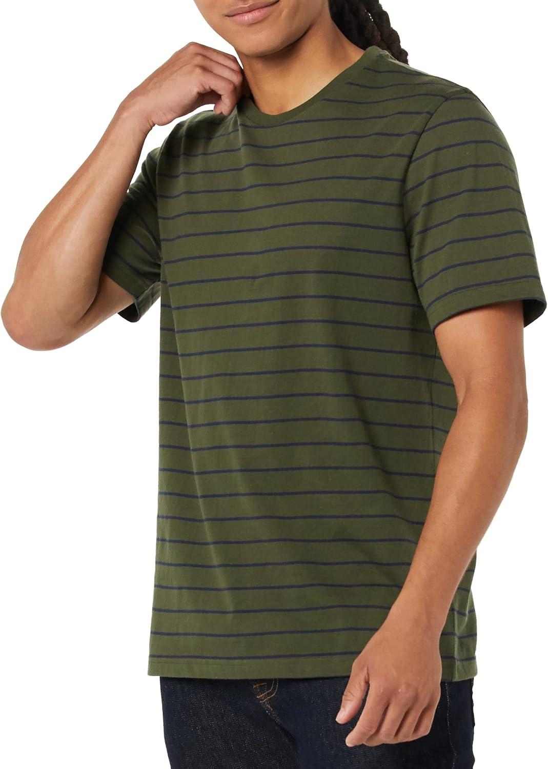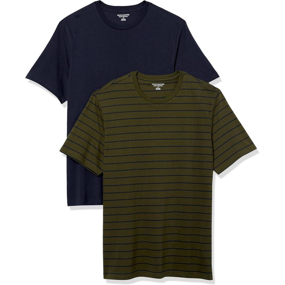 Amazon Essentials Men’s Cotton Regular-Fit Short-Sleeve Crewneck T-Shirt, Pack of 2(Navy/Olive Stripe)
