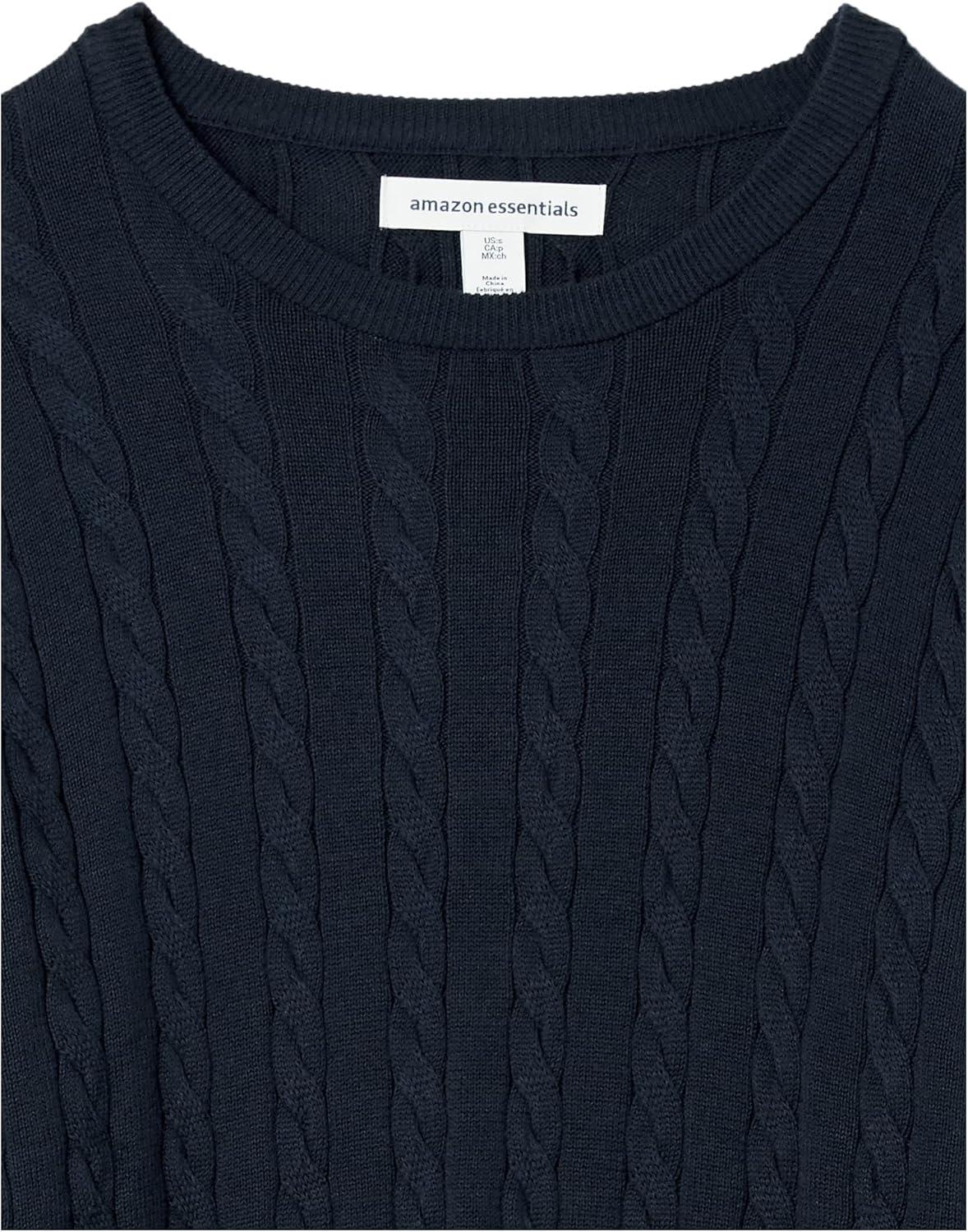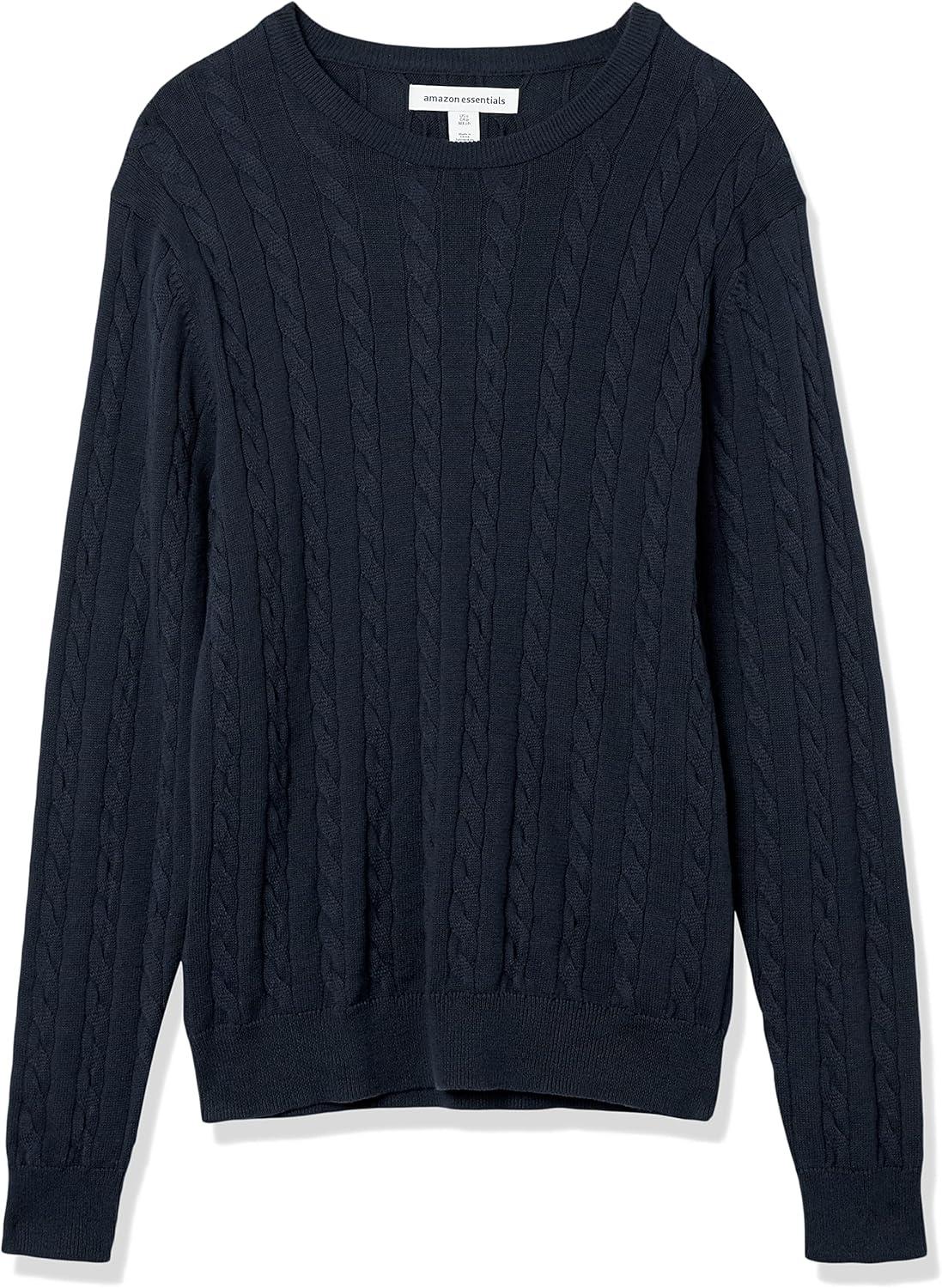 Amazon Essentials Men’s Crewneck Cable Cotton Sweater(Navy)