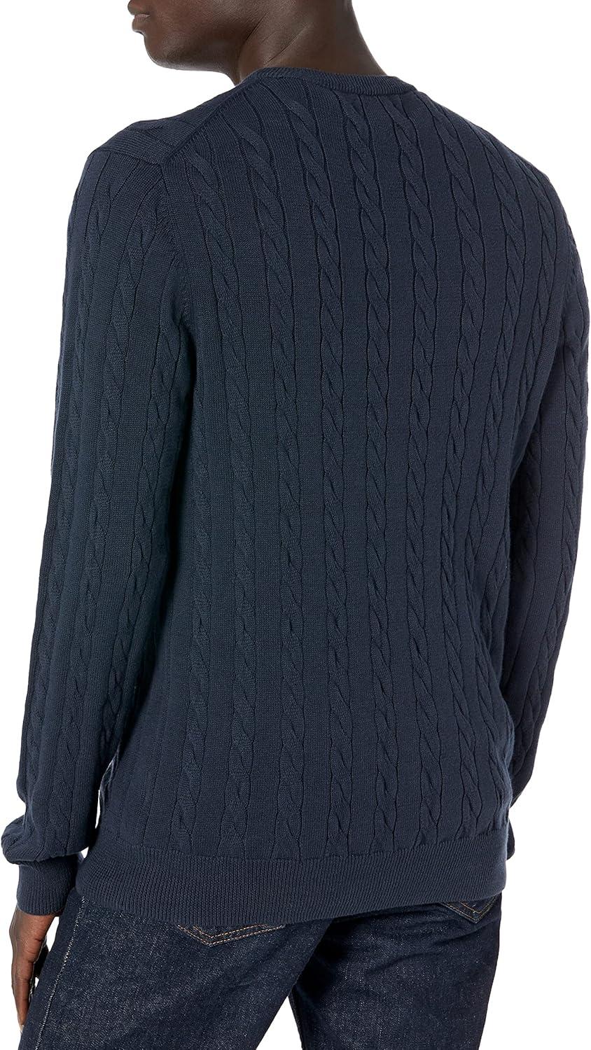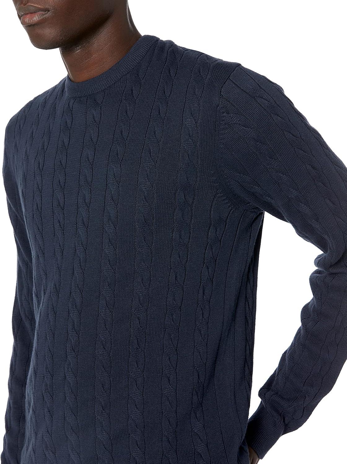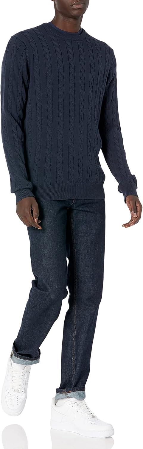 Amazon Essentials Men's Crewneck Cable Cotton Sweater(Navy)