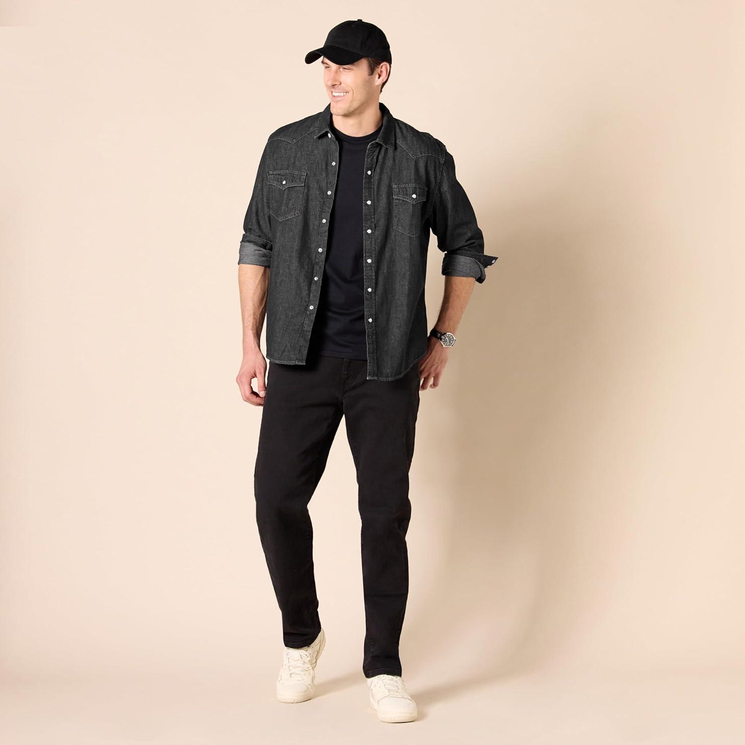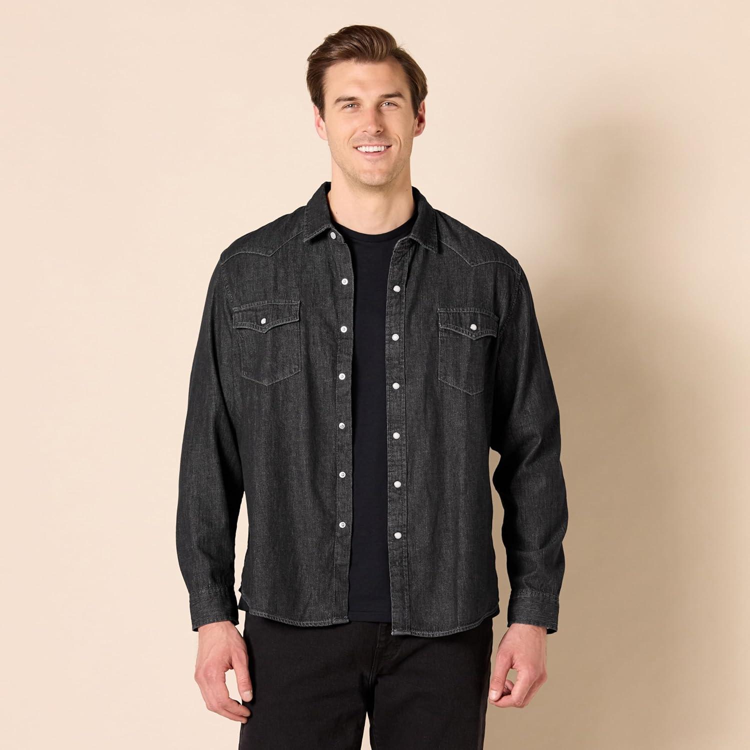 Amazon Essentials Men's Denim Shirt Long Sleeve - Regular-Fit Denim Shirt(Black)