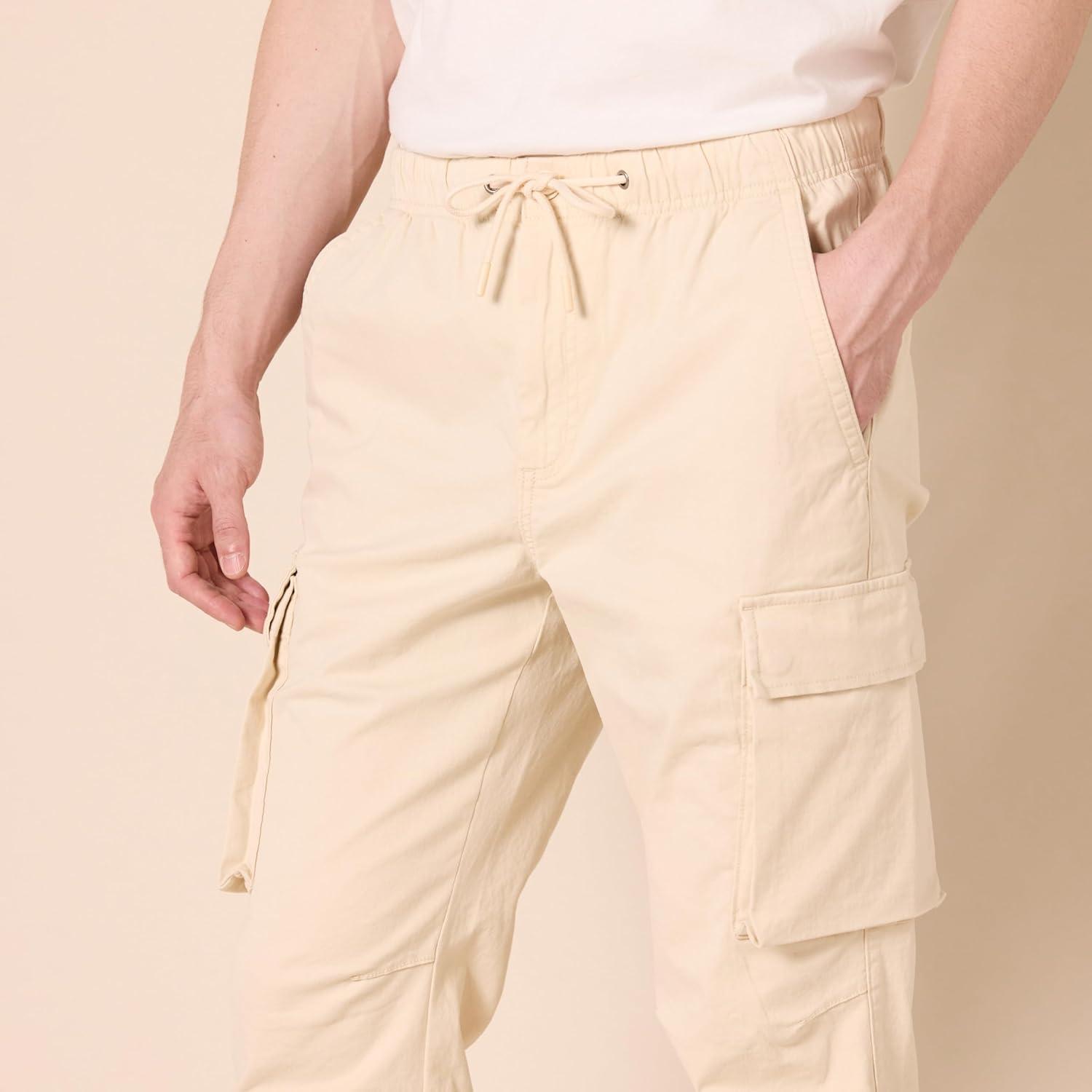 Amazon Essentials Men’s Drawstring-Waist Regular-Fit Cargo Jogger(Light Beige)
